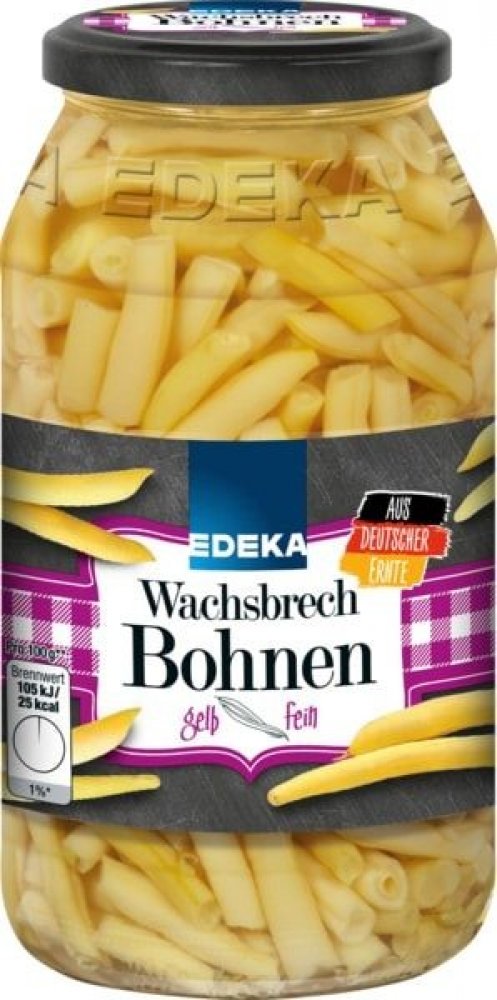jemně tříděnémladé fazoleZpracováno čerstvě ze sklizněnejlepší výběrz německé sklizněseznam složekSložení: voskové fazole, voda, kuchyňská sůl, okyselující látka: kyselina citronová.Nutriční informaceprůměrné nutriční hodnoty100 ml nebo gv jedné porci RM na 100 ml nebo g nebo na porciVýhřevnost v kJ105,001Výhřevnost v kcal25,001Tuk v g0,10 1Tuk, z toho nasycené mastné kyseliny v g0,10 1Sacharidy v g3,001Sacharidy, z toho cukr v g0,90 1Bílkoviny v g1,603Sůl v g0,508. RM = referenční příjem pro průměrného dospělého (8 400 kJ / 2 000 kcal)Výrobce:EDEKA ZENTRALE AG Co. KGNew-York-Ring 6D-22297 Hamburg