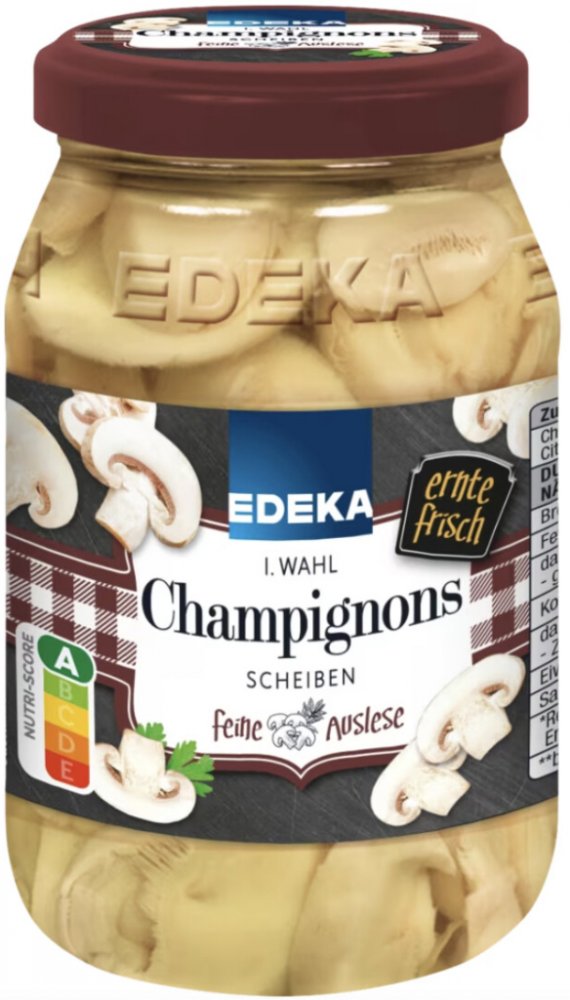 Složení: houby, voda, kuchyňská sůl, regulátor kyselosti: kyselina citronová; Antioxidant: kyselina askorbová