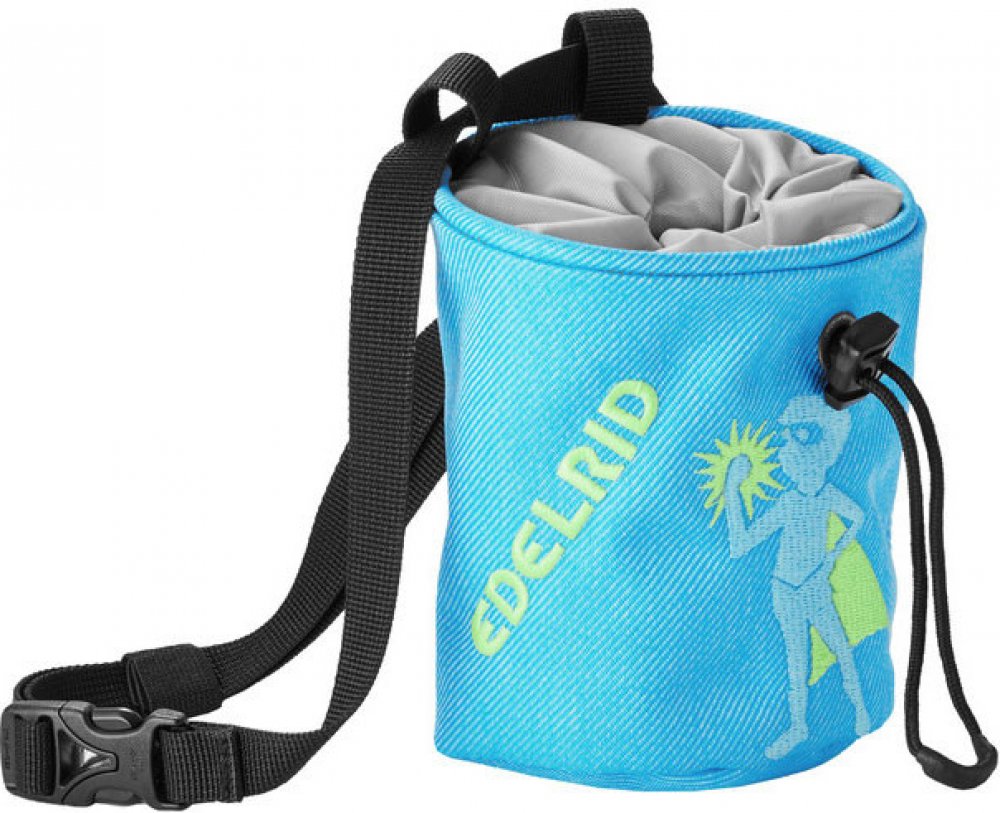 Pytlík na magnézium pro mladé lezce s klasickým stahováním na šňůrku a dvěmi poutky na kartáček. Velikost akorát pro dětské ruce (10 x 12 cm). Vyrobeno z materiálů s certifikací Bluesing®.