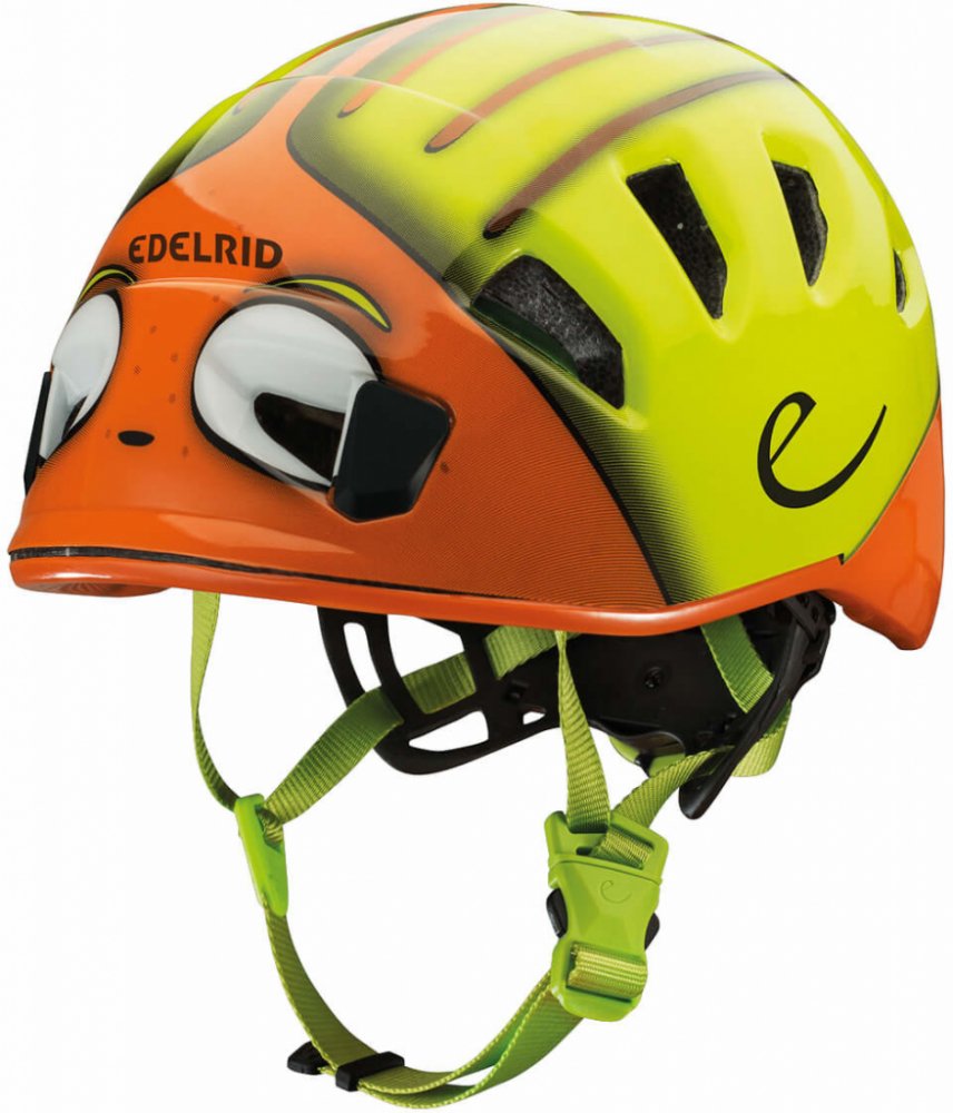 Pro vyšší bezpečnost je KIDS SHIELD vybavena čtyřmi robustními úchyty na čelovku a plně nastavitelným podbradním páskem. Vybrané modely s oranžovým zapínáním a Wing Fit systémem navíc splňují EN 1078 pro cyklistické helmy – přilba tak najde využití i mimo skály.