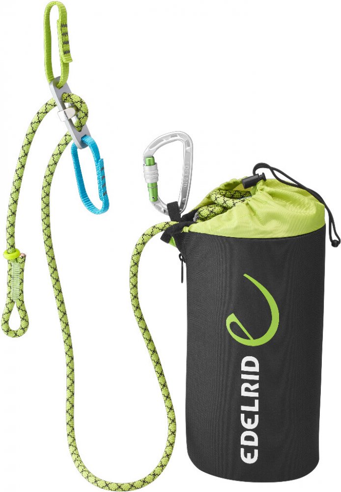 Set obsahuje samoblokovací jistítko, které automaticky brzdí při zatížení, a 15 m lano s barevně odlišenými zakončeními pro snadnější orientaci. Šité konce lana zvyšují odolnost a bezpečnost. K použití nejsou potřeba žádné další karabiny. Vše je zabaleno v praktickém transportním vaku s návodem k použití.