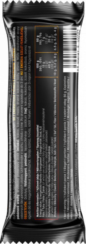 - Slaný karamel: Kukuřičná vláknina, mléčný proteinový koncentrát, arašídy, kokos, zvlhčující látka (glycerol), sladidlo (erythritol), přírodní aroma. Může obsahovat stopy ostatních skořápkových plodů.