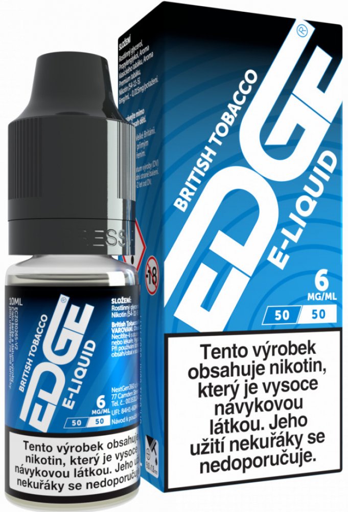 Edge-British Tobacco je vytvořen tak, aby poskytoval skutečný zážitek z kouření tabáku. Jeho jemná a bohatá chuť připomíná kouření pravého cigaretového tabáku. British Tobacco je ideální pro vapování jak pro začátečníky, tak pro pokročilé uživatele. Jeho vyvážená směs umožňuje plynulý vaping bez nepříjemných hořkých pachutí.