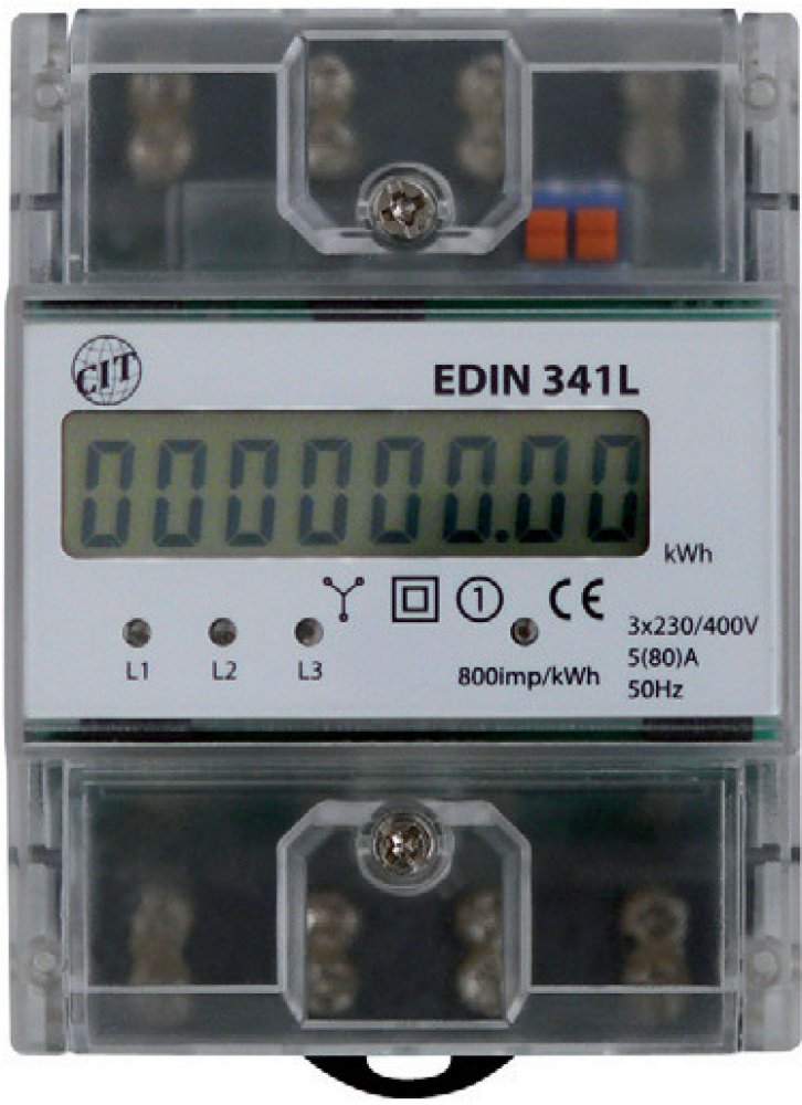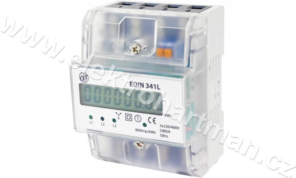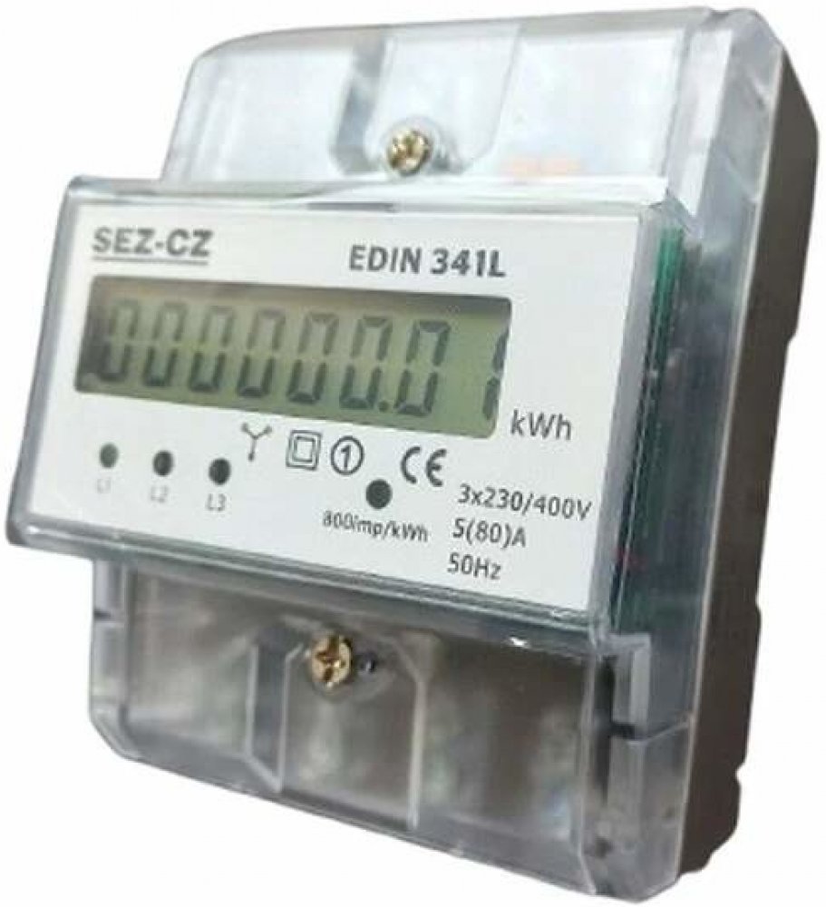 EDIN 341L 80A 4,5M, třífázový, jednosazbový, podružný, elektroměr, na, listu, DIN, přímé měření 10-80A, měřič, spořeby, elektřiny, elektrické, energie,