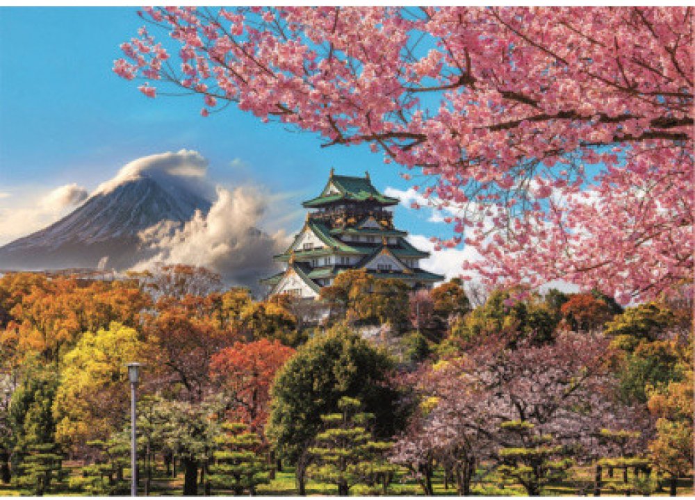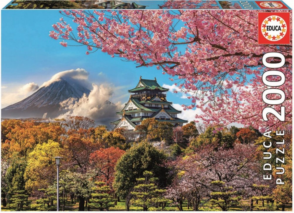Puzzle od španělského výrobce Educa v obdélníkovém tvaru s krásným motivem pohledu na hrad v Ósace v Japonsku.