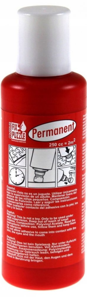 POZOR! V závislosti na stupni přilnutí jednotlivých prvků k sobě lepidlo není vždy schopno proniknout do prostorů mezi jednotlivými prvky. Proto je třeba přenášet celou skládačku s mimořádnou opatrností. Lepidlo by nemělo být považováno za metodu, která na 100% trvale spojí prvky puzzle, neboť takového efektu je dosaženo až po nalepení na jiný povrch s použitím tradičního lepidla. Námi nabízený prostředek má tento úkol pouze usnadnit.