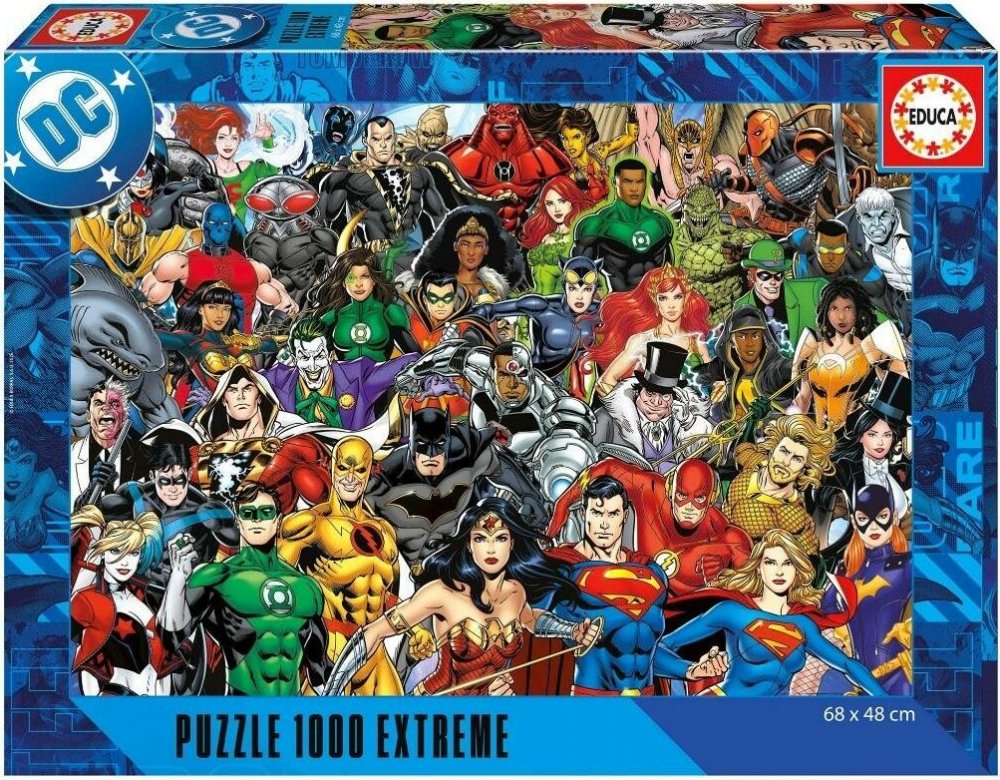 Série Xtreme se skládá ze tří skládaček, které mají formát 1 000 dílků. Co je odlišuje: jsou extrémně náročné. Prověří vaše schopnosti a trpělivost. Jste připraveni zvládnout nemožné? Značka Educa má dlouholetou tradici. Její historie začala v roce 1894 a pokračuje dodnes. Dnes jsou výrobky Educa distribuovány do více než 75 zemí světa. Značka Educa je zárukou nejvyšší kvality. devadesát procent výrobků se vyrábí v závodech v Barceloně. Procházejí přísnými bezpečnostními kontrolami a při jejich výrobě se používají obnovitelné a suroviny. Katalog Educa nabízí mimořádně široký sortiment hlavolamů pro všechny věkové kategorie, který kombinuje nejprestižnější vlastní značky a nejoblíbenější licence, protože nejlepší způsob, jak uspokojit množství fanoušků, je objevovat nové možnosti a nové designy. V roce 2017 získala Educa jako první výrobce puzzle certifikaci FSC pro všechny výrobky z papíru a lepenky. Forest Stewardship Council (FSC) je nezisková organizace, která chrání, monitoruje a podporuje udržitelné hospodaření v lesích. FSC znamená, že veškerý papír a lepenka jsou dohledatelné a pocházejí z odpovědně obhospodařovaných lesů. Tato skládačka je dodávána s LEPIDLEM . Velikost složeného puzzle je přibližně 68 x 48 cm Puzzle Justice League DC Comics, Výrobce: Educa, Počet dílků: 1000