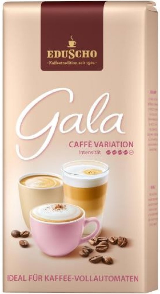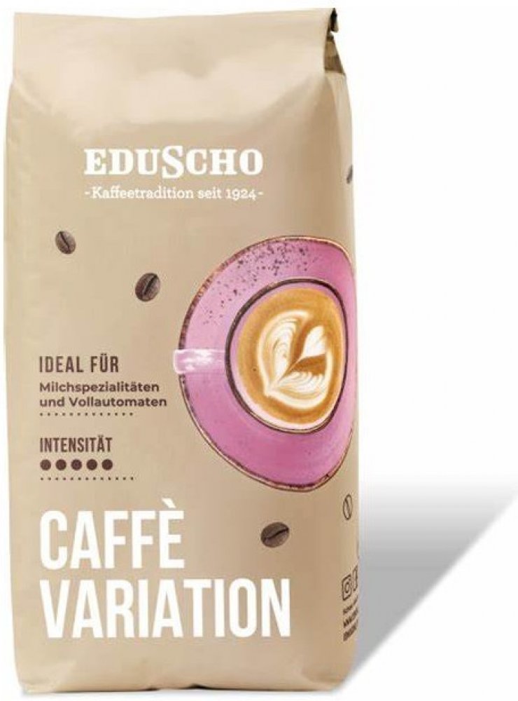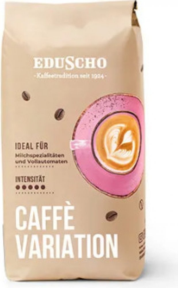Popis: Eduscho Caffé Variation je ideální volbou pro ty, kteří si chtějí vychutnat různé kávové nápoje. Kombinace robusty ze slunečního jihu Asie a brazilské arabiky přináší vynikající všestrannost. Tato káva je skvělá pro přípravu cappuccina, latte macchiato, flat white, ale také chutná skvěle jako espresso nebo caffé crema.