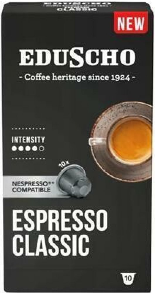 Eduscho Espresso Classico představuje klasiku mezi kapslovými kávami – aromatická, vyvážená a připravená pro všechny, kdo si potrpí na tradiční italské espresso. Dokonale kombinuje jemnou kyselost arabiky s lehce plným nádechem robusty, díky čemuž každý šálek nabízí bohatou chuť a plné aroma.Intenzita: 4/5 - střední: vyvážená kombinace jemnosti a výraznostiChuť: harmonická, s tóny čokolády a jemně oříškovým závěremAroma: bohaté, příjemné a dlouhotrvajícíNejlepší pro: espresso (40 ml), ideální také jako základ pro cappuccino nebo latte macchiatoKompatibilní s kávovary NespressoSkladujte mimo teplo, na suchém a tmavém místěKontaktní údaje výrobce/prvního distributora v EU:TCHIBO BUDAPEST Kft2040 Budaörs Neumann J. utca 1., HUlevelek@tchibo.huwww.tchibo.hu