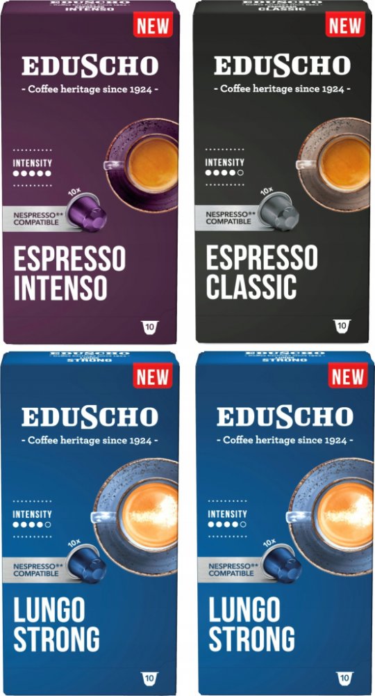 Kapsle pro Nespresso Tchibo Eduscho Sada 4 x 10 kusů - 40 kapslíEduscho Lungo Strong – kapsle pro Nespresso®*2 balení po 10 kusůIntenzivní káva v pohodlných kapslích