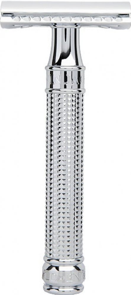 Klasický holicí strojek na žiletky, vyrobený z kvalitní vysoce leštěné mosazi. Zajímavostí je tzv. diamantový 3D vzor rukojeti, díky kterému strojek lépe drží v ruce. Má dokonalé vyvážení a zažijete s ním velmi hladké oholení.