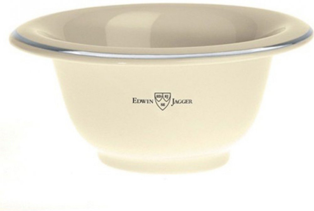 Porcelánová miska v barvě slonové kosti na holení s pokoveným okrajem, v níž vytvoříte bohatou pěnu.Výška 5,5 cm. Průměr 12,5 cm. Vyrobeno v Anglii.