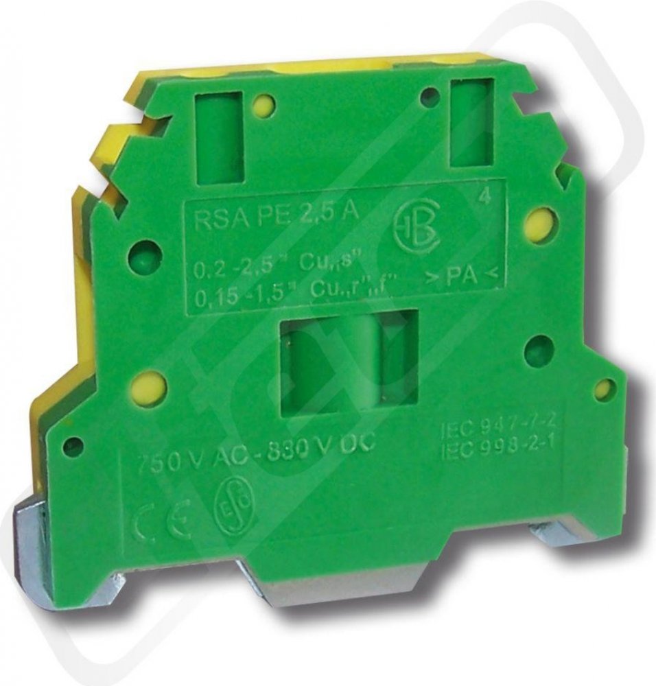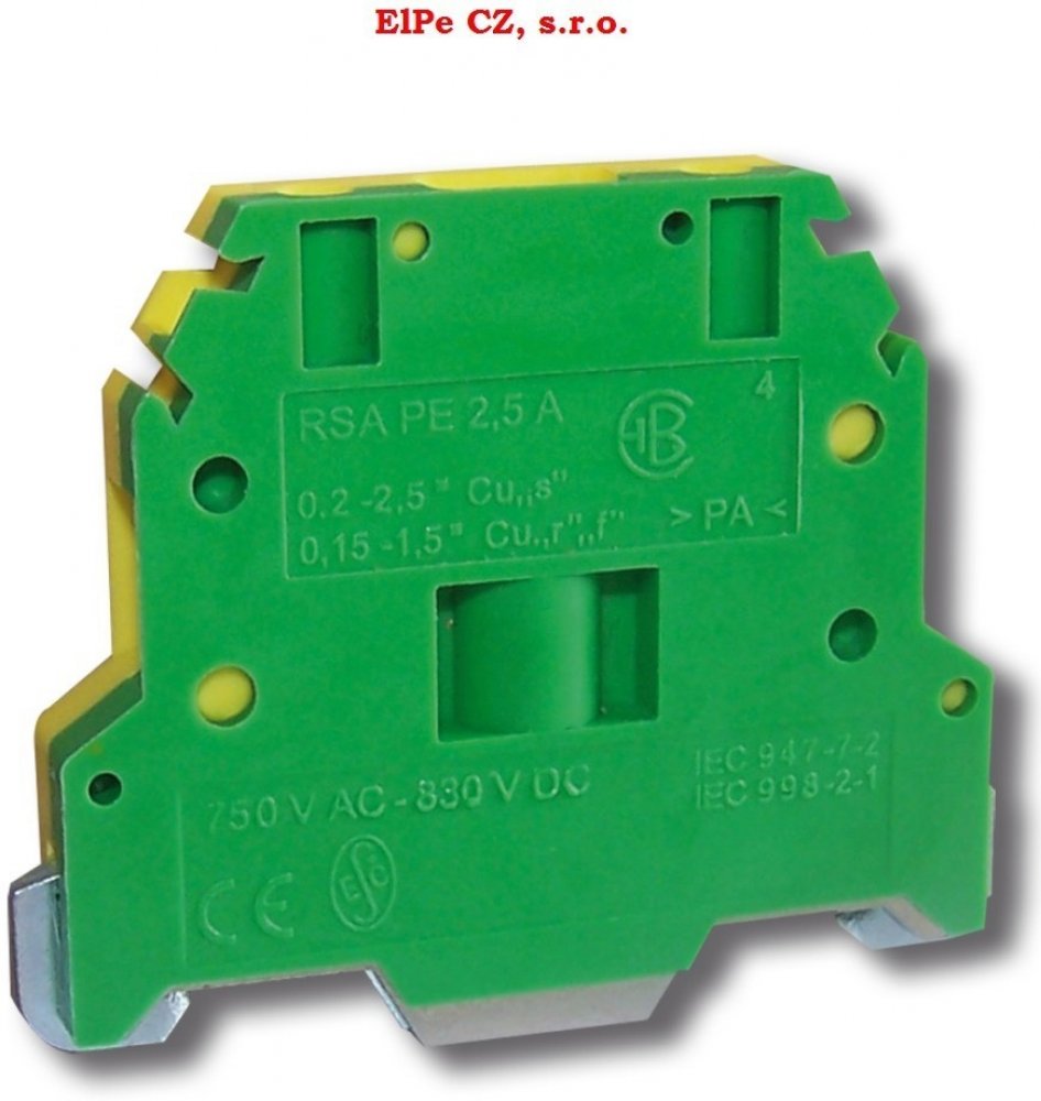 Tyto výrobky jsou určeny ke spojování ochranných vodičů v soustavách TN-C, TN-S. Jsou konstrukčně řešeny s vodivým spojením ochranné ho vodiče na nosnou lištu TS 35x7,5 a TS 35x15 ocelovou, galvanicky upravenou ZnCr. Vodivé spojení je spolehlivě zajištěno kontakte m při dodržení pokynu k montáži,dodávaného s výrobkem. Všechny typy svornic RSA PE jsou obrysově (délka a výška) totožné se základní mi...