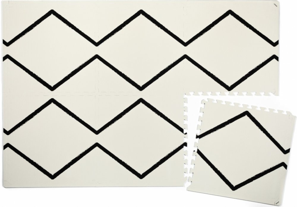 Hrací podložku lze sestavit buď do čtverce ve velikosti 120x120 cm, nebo jako obdélník 120x180 cm. Jednotlivé dílky do sebe zapadnou jako puzzle, díky přidaným okrajům bude vypadat kompaktně - spáry jsou téměř neviditelné.