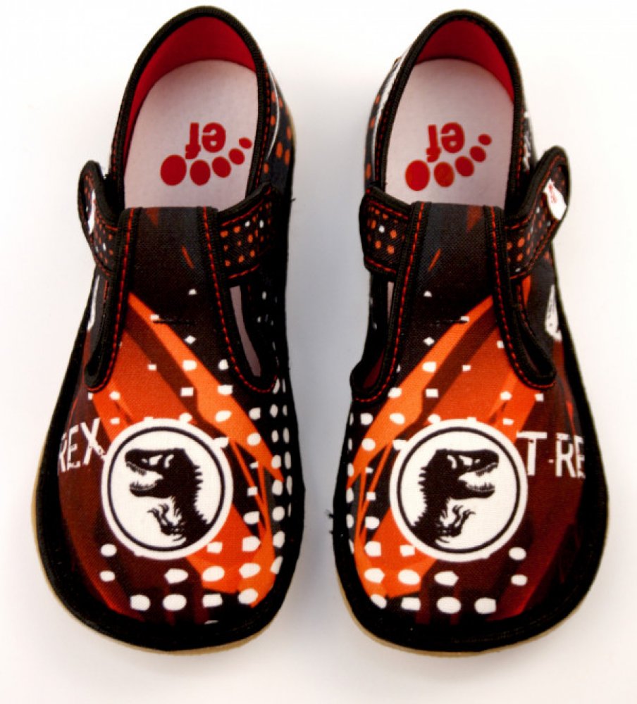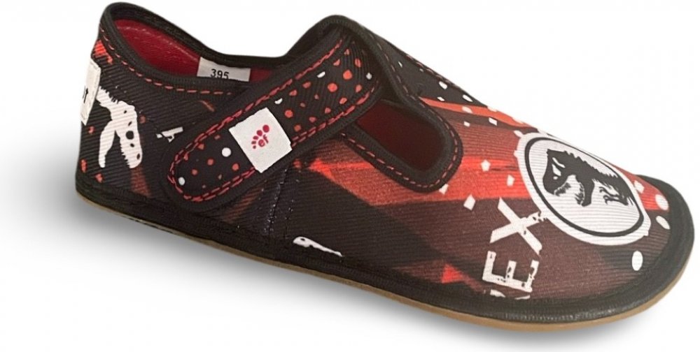 Barefoot bačkorky na suchý zip. Bačkorky mají dostatečně širokou prstovou část. Tento model má novou 2 mm vysokou podešev.