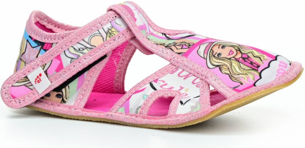 EF Barefoot růžová na suchý zip bačkory textilie