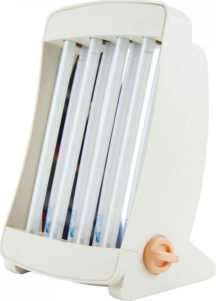 Obličejové solárium neboli horské sluníčko EFBE-SCHOTT se 4 UV-trubicemi pozitivně přispívá k tvorbě vitamínu D. Slouží pro opalování obličeje i dekoltu. Opatřeno časovým spínačem, který je možný nastavit na 0-30 minut, i paměťovým záznamem opalování až pro 4 osoby.