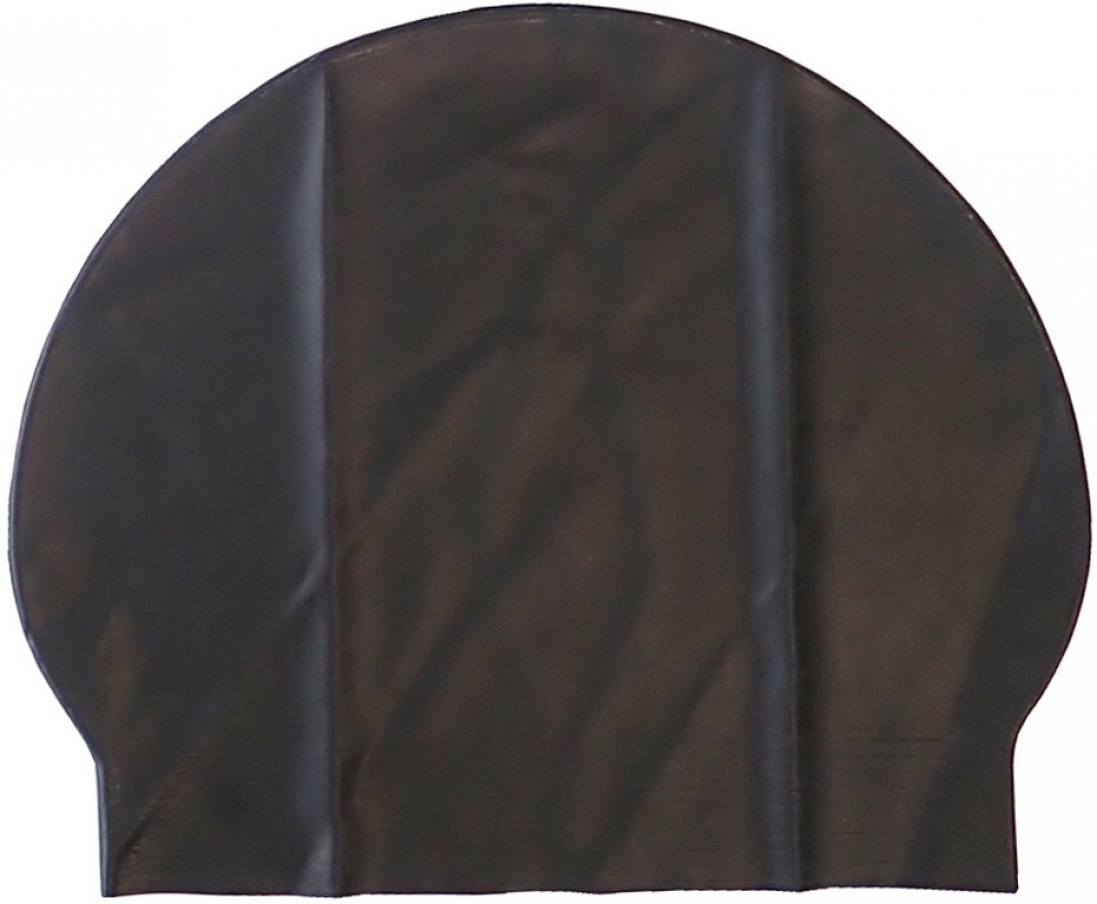 Čepice koupací do vody. Plavecká latexová pokrývka hlavy, na plavání. Zpevněný okraj pro pevnější držení na hlavě. Barva černá. Univerzální velikost.