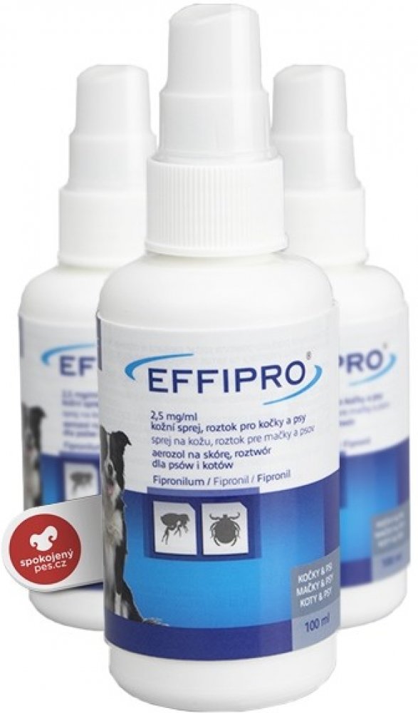 Effipro sprej je antiparazitikum pro léčbu a prevenci napadení blechami, klíšťaty a všenkami a pro léčbu a kontrolu alergie na bleší kousnutí (FAD) u psů a koček.