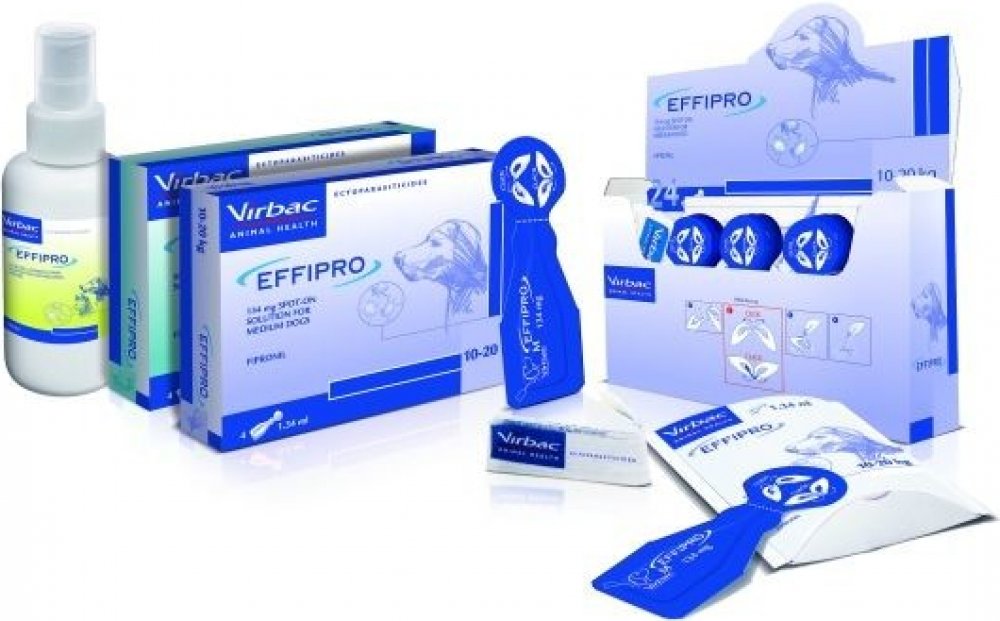 Fipronil vykazuje insekticidní a akaricidní účinek proti blechám (Ctenocephalides spp), klíšťatům (Rhipicephalus spp, Dermacentor spp., Ixodes spp. včetně Ixodes ricinus) a všenkám (Trichodectes spp., A. Felicola spp.) u psa a kočky.