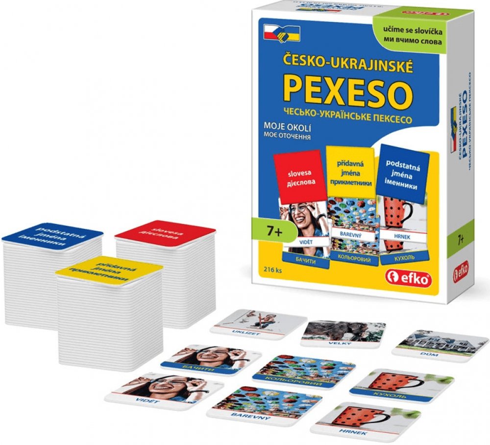 – MOJE OKOLÍ (CZ-UA) Tato jazyková hra se skládá ze tří samostatných pexes, která slouží k rozvoji slovní zásoby – například společnou hrou ukrajinských dětí hrou s dětmi českými.