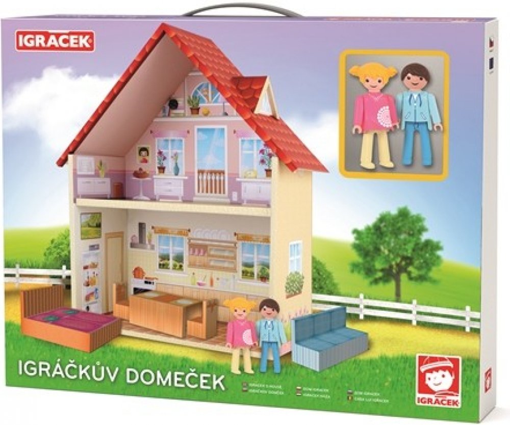 Kartonový dvoupatrový Igráčkův domeček sestavíte velmi snadno. Plastové klipy podporují jeho stabilitu. Součástí je nábytek a dvě postavičky Igráček Chlapeček a Holčička. Domeček je krásná hračka, ale i dekorace dětského pokojíčku. Rozměr domečku, ČR. Dvoupatrový Iigráčkův domeček je nádhernou hračkou, ale také ozdobou dětského pokoje. Jeho součástí je také nábytek a dvě postavičky - Igráček a Igr...