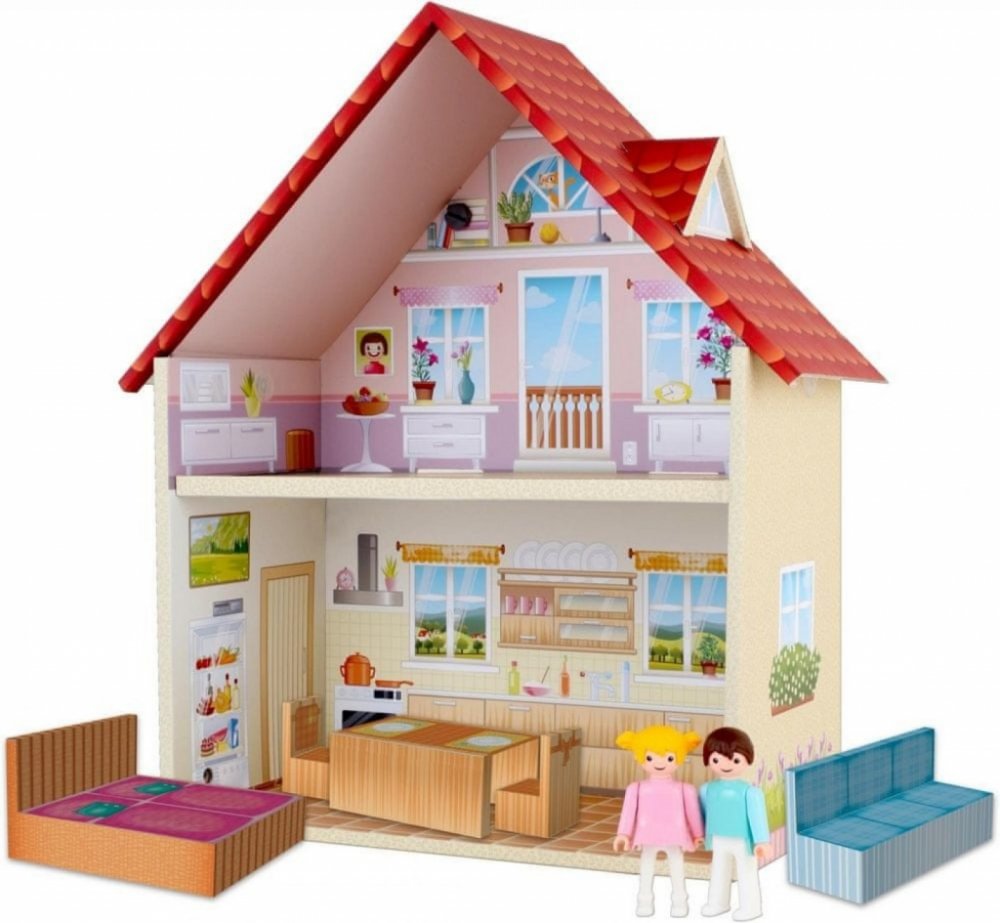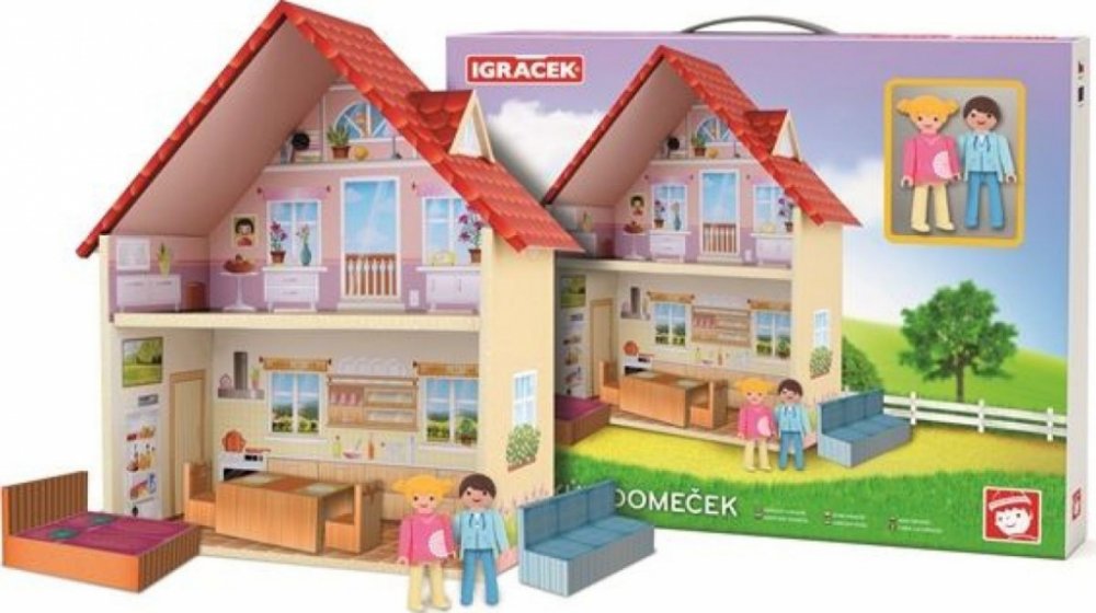 Kartonový dvoupatrový Igráčkův domeček sestavíte velmi snadno. Plastové klipy podporují jeho stabilitu. Součástí je nábytek a dvě postavičky Igráček Chlapeček a Holčička. Domeček je krásná hračka, ale i dekorace dětského pokojíčku. Rozměr domečku, ČR. Dvoupatrový Iigráčkův domeček je nádhernou hračkou, ale také ozdobou dětského pokoje. Jeho součástí je také nábytek a dvě postavičky - Igráček a Igráček. Stáří je velmi snadné pomocí plastových klipů, které podporují jeho stabilitu. Pevný domeček je vyroben z kvalitního laminovaného kartonu.
