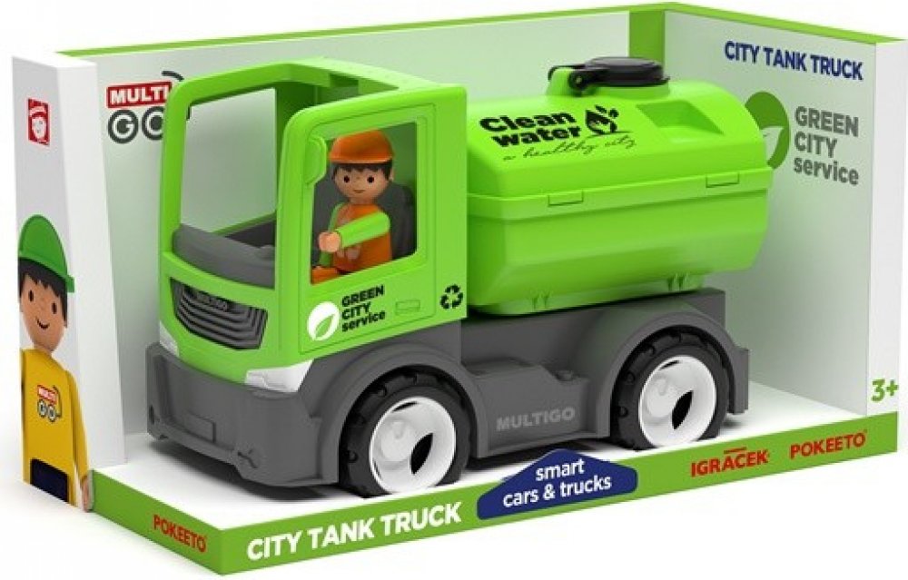 • MultiGO City obsahuje: tahač, vyměnitelnou nástavbu – rozebíratelnou a vyčistitelnou cisternu s otevíracím poklopem a figurku Igráčka.