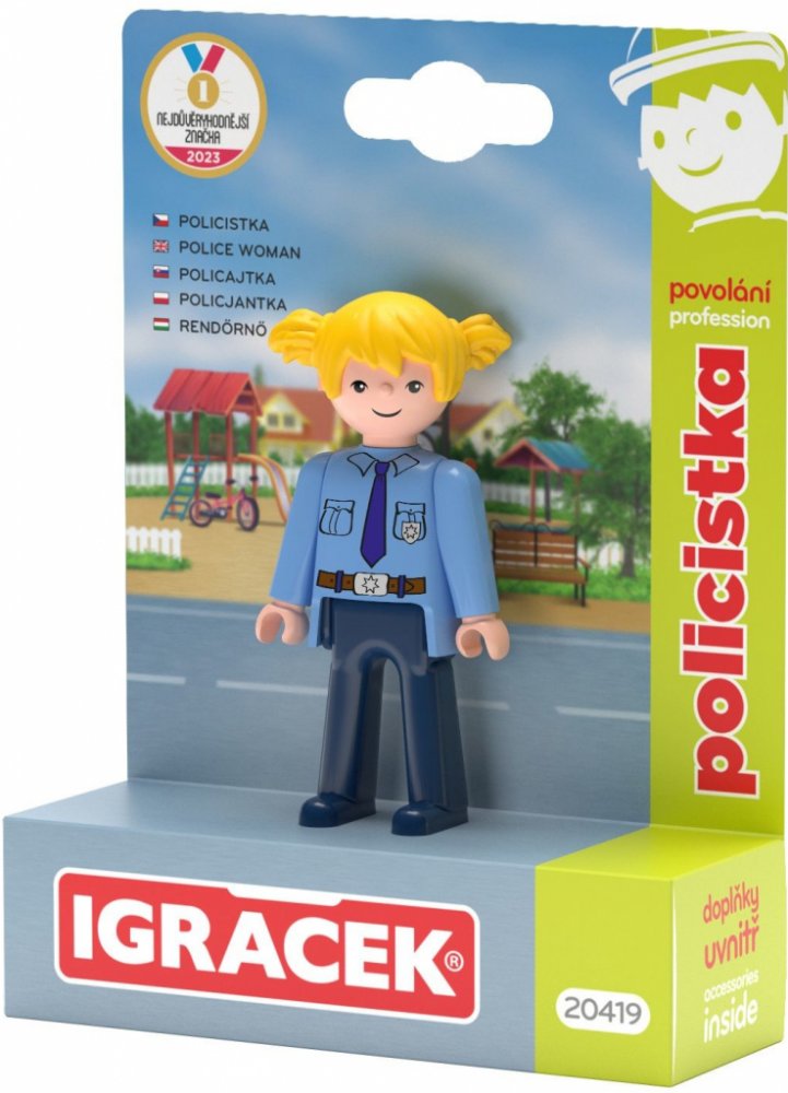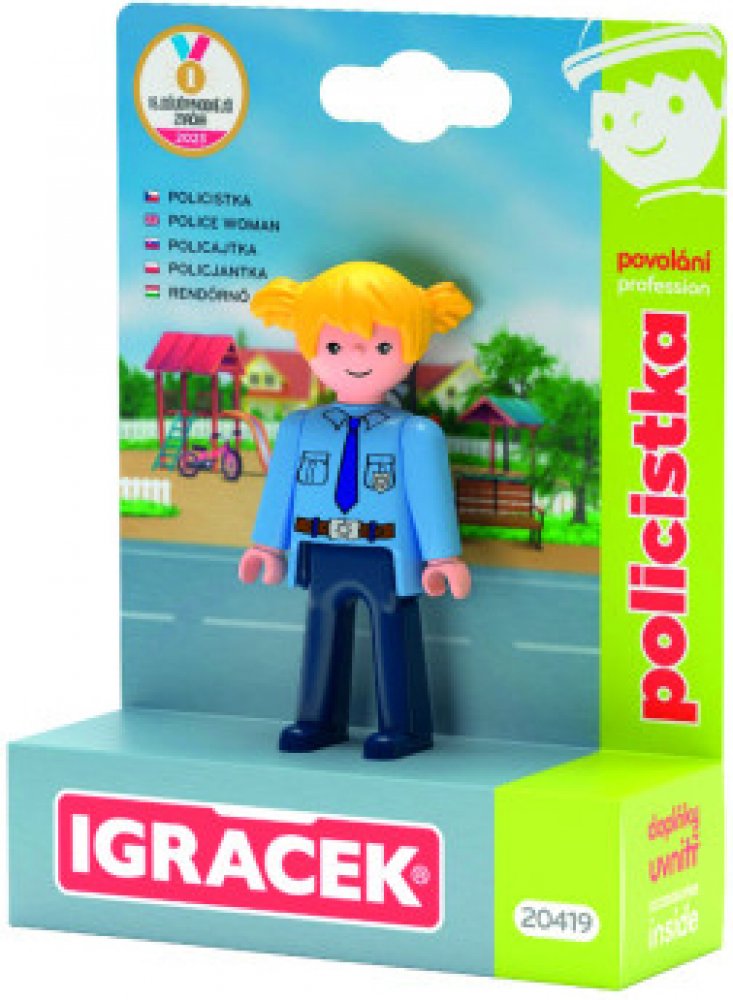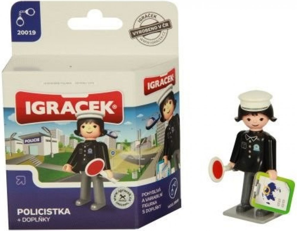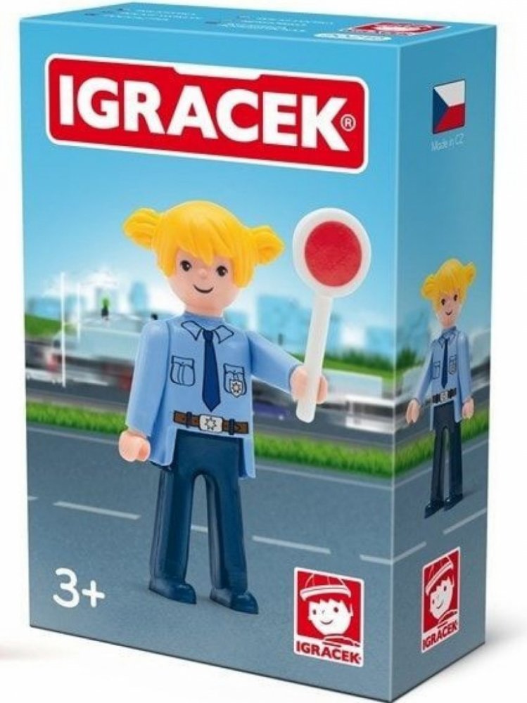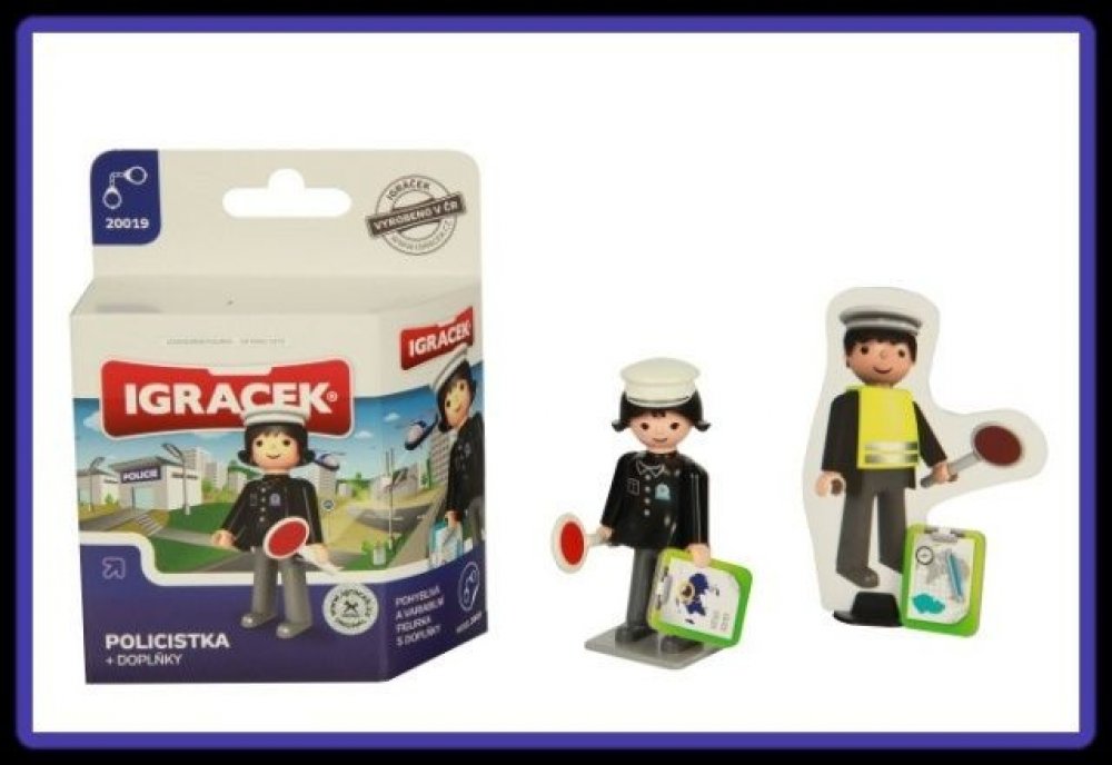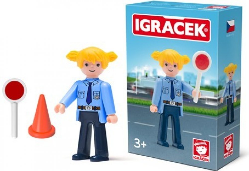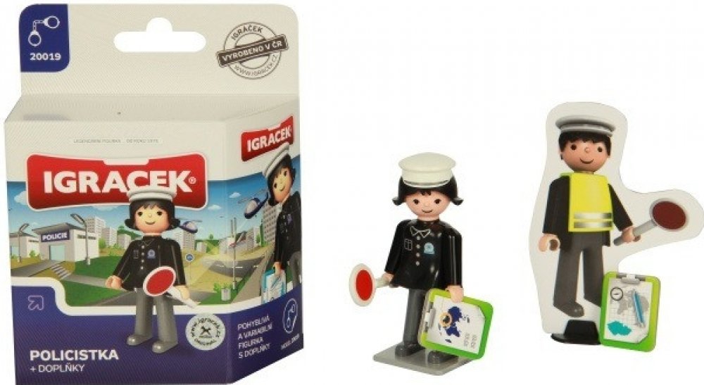 Balení obsahuje postavičku policistky (v): 8 cm, plácačku a kužel