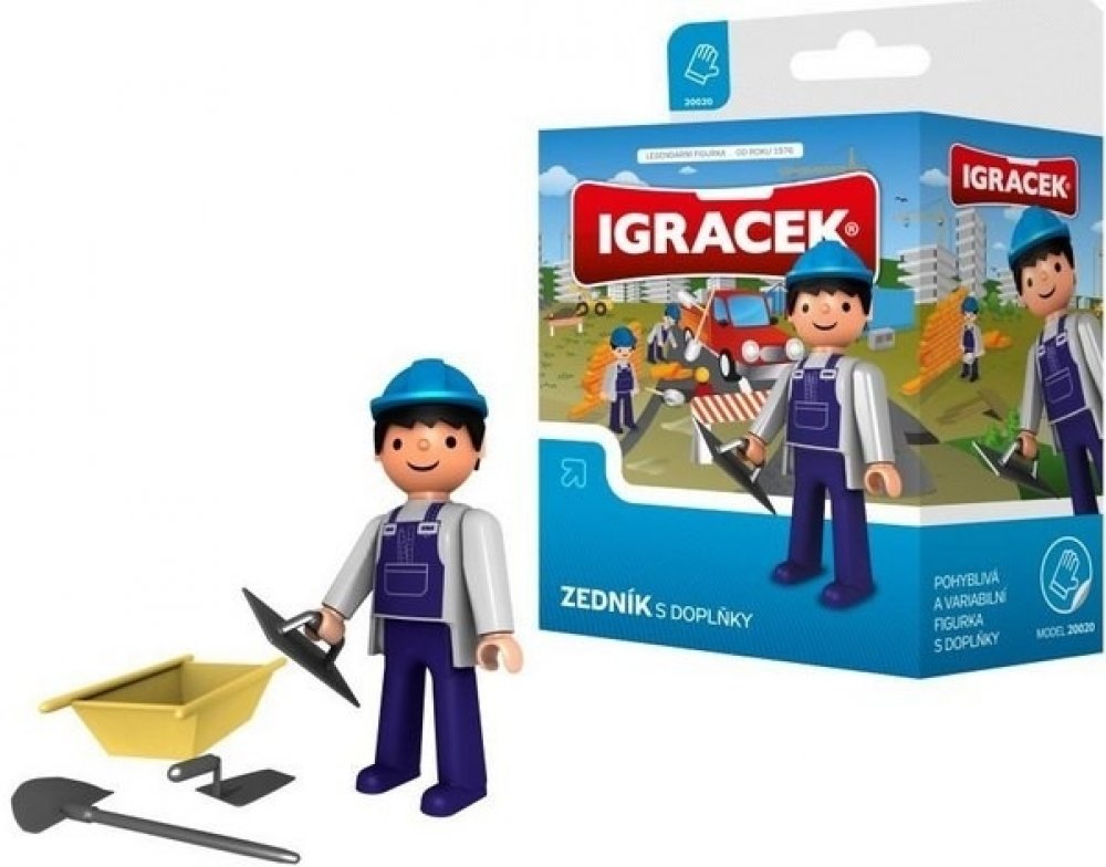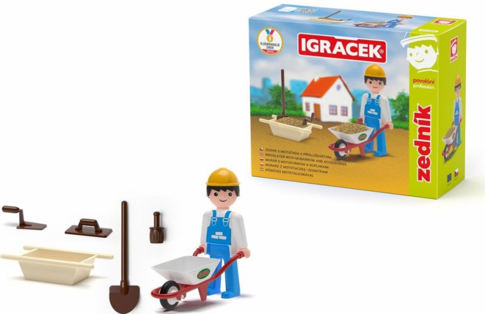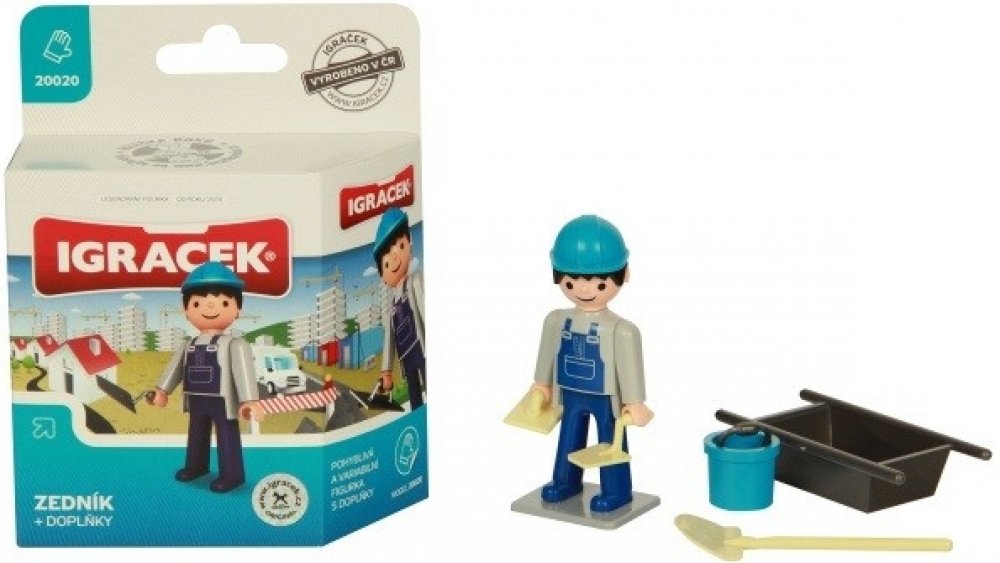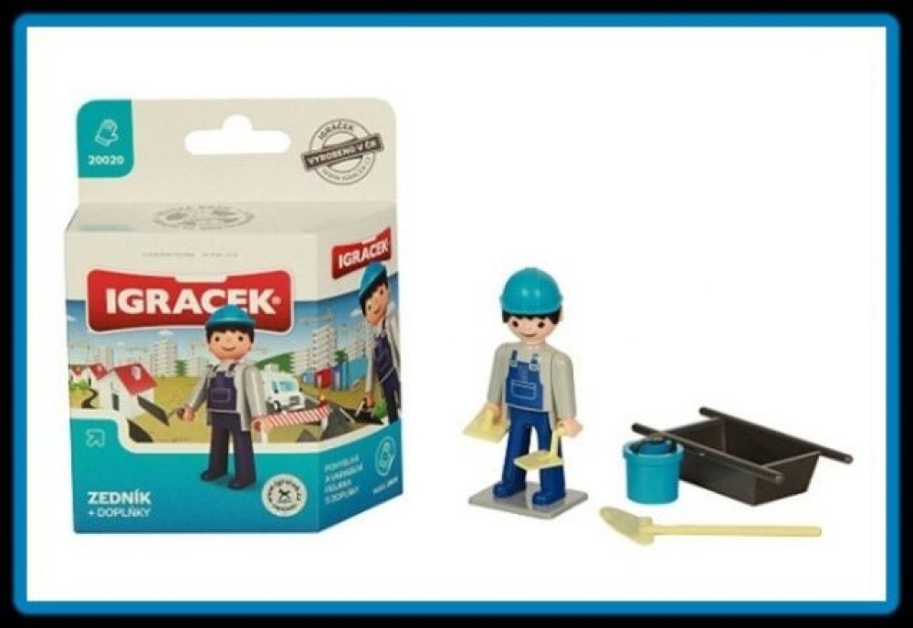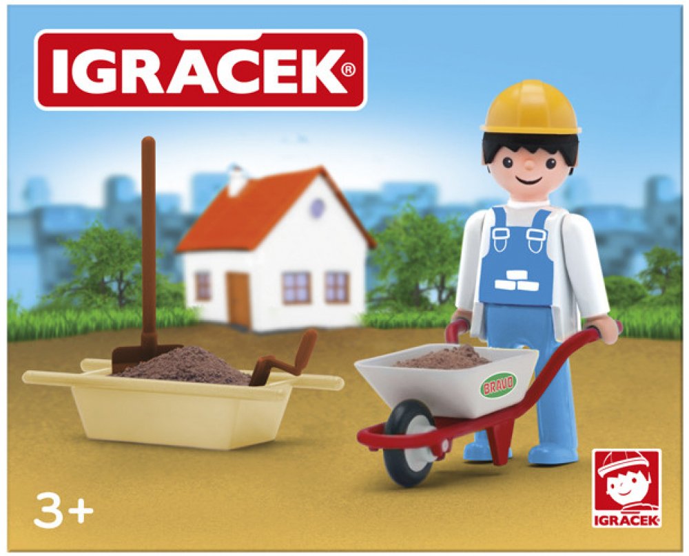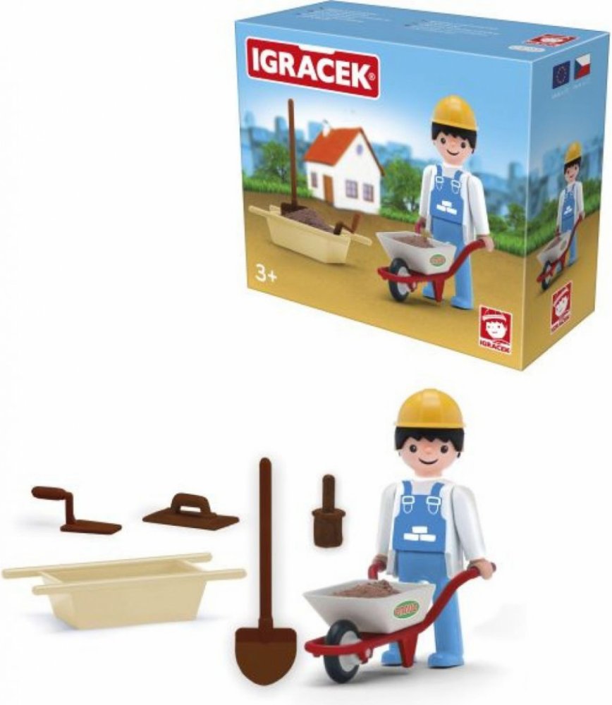 S pomocí Igráčka zedníka ti půjde stavba nového domu jedna radost. Společnými silami položíte základy, postavíte stěny a nakonec pokladete střechu. Panáček má spoustu doplňků, mezi nimi například zednickou lžíci, lopatu, vaničku na beton nebo kolečka.