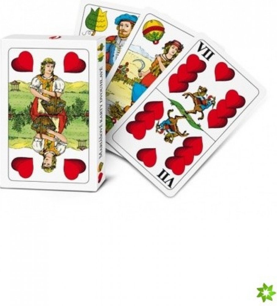 Pro všechny druhy mariáše, pořiďte si karty naše. Dvouhlavé karty v papírové krabičce. Vyrobeno v České republice.