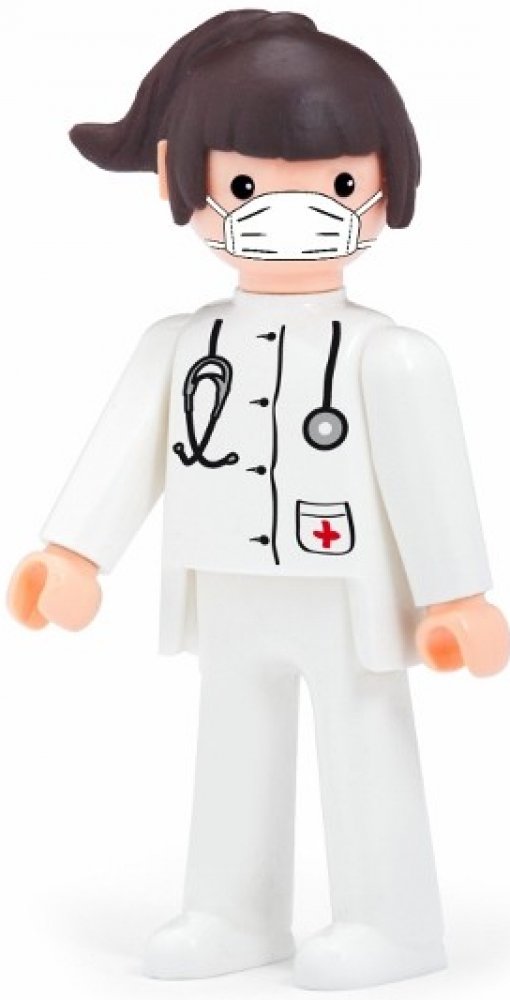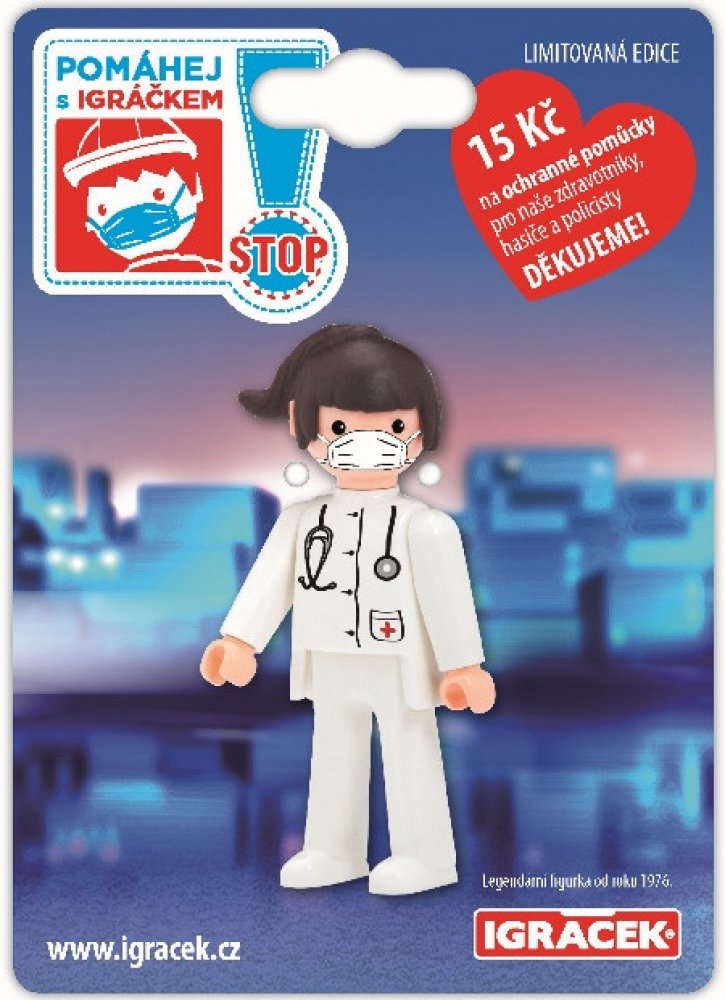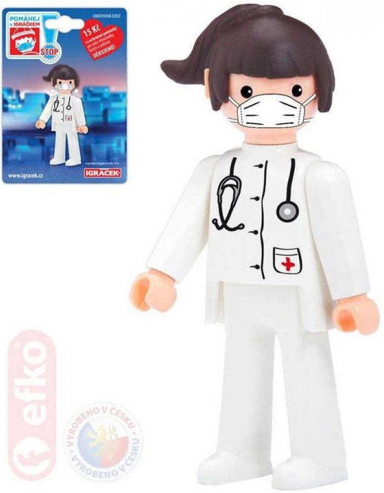 EFKO 25081 - Igráček profese Doktorka s ústenkou na obličeji, ze speciální, limitované edice "Pomáhej s igráčkem", reflektující aktuální dění v souvislosti s šířením koronovairu Covid-19. Plastová figurka na kartě.