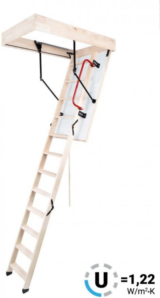Dřevěné skládací půdní schody OmanLong Termo Ps jsou dodávány včetně příslušenství a to za výhodnou cenu. Schody třídy Long se vyznačují delším žebříkem než je u ostatních schodů OMAN. Schody jsou určeny pro vysoká podlaží, kde základní modely schody OMAN nestačí. Jedná se o základní provedení schodů OMAN Long s izolací víka 20 mm. Tyto skládací půdní schody slouží jako jednoduchý, praktický a zateplený výlez do půdních prostor. Schody Long Termo PS mají zateplené 26 mm silné víko, které je z pohledové strany opatřeno bílou HDF deskou. Víko je zatepleno 20 mm polystyrénem. Schody jsou vyráběny pro maximální výšku podlaží 310-330cm a mají 135mm vysoký dřevěný rám. Schody mají 4-dílný dřevěný výlezový žebřík, nášlapy mají protiskluzovou úpravu. Jednotlivé díly výlezového žebříku jsou spojovány speciální ocelovou sponou. Maximální možné zatížení pro půdní schody LongTermo PS je 160 kg. Součástí balení je stahovací tyč, sada pružin pro snadné otevírání a zavírání schodů, zavírací mechanismus (zámek), ochranné stopky, madlo - schody tedy stačí rozbalit a namontovat. Půdní schody Long Termo PS jsou schody s plnou výbavou. Součinitel prostupnosti tepla U= 1,22W/m2*K.