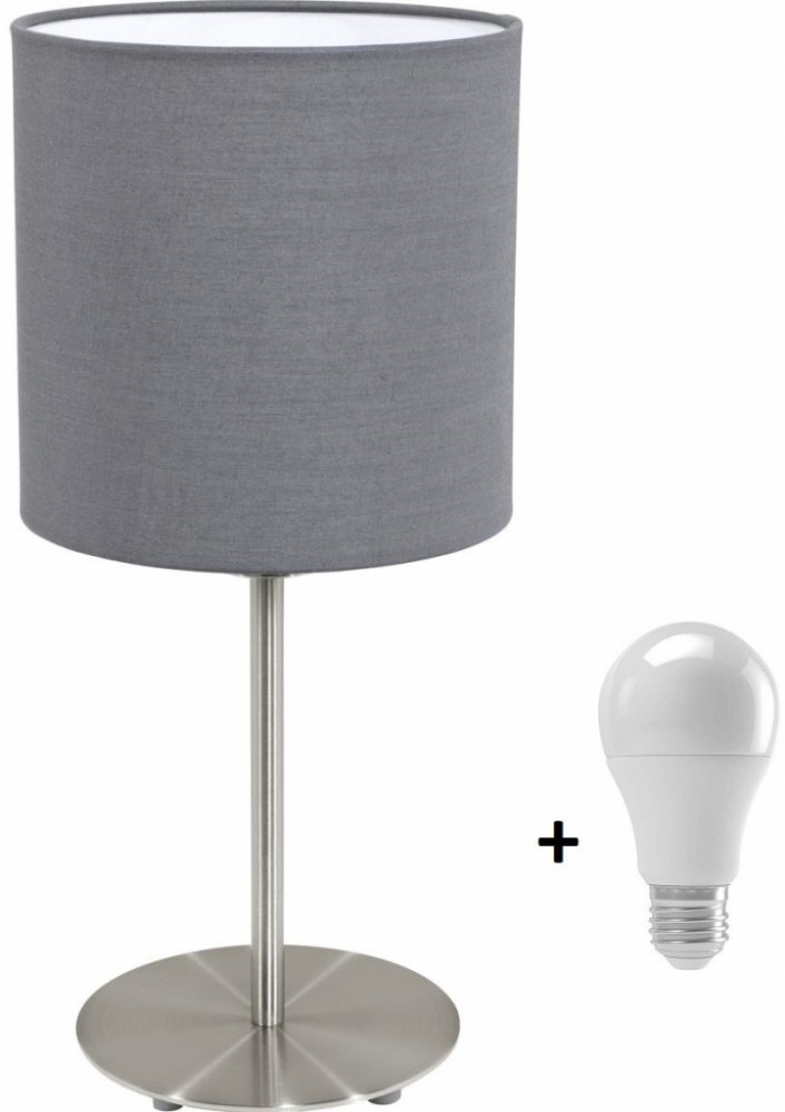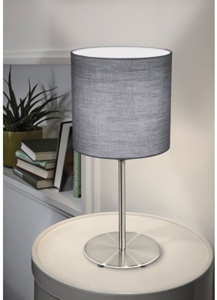 Stolní lampička PASTERI vám posvítí na prostory kanceláře, firmy či podniku, nebo váš domov. Lampička je z oceli a tkaniny v šedé barvě, kterou zapínáte pomocí přepínače na kabelu.