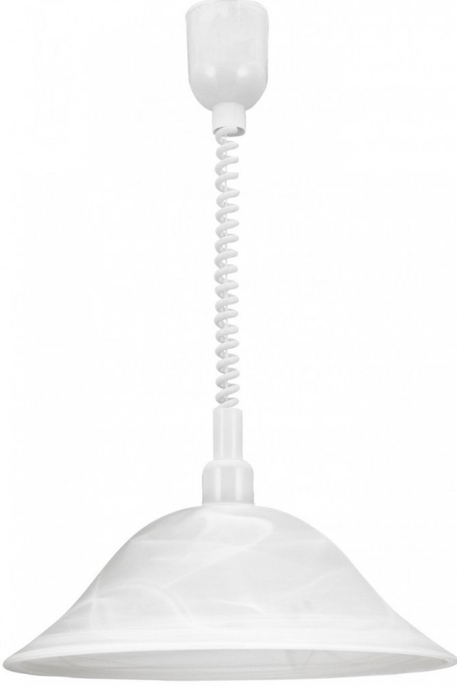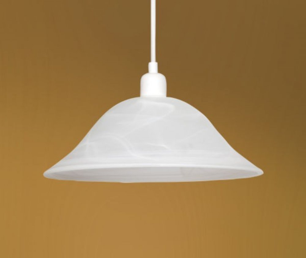 Lustr tvoří skleněné bílé stínidlo s decentním vzorem.