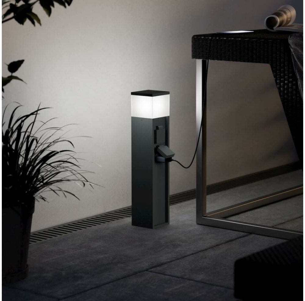 Příkon: 1X25 W, Patice: E27, Zdroj světla: E27, Zdroj součástí balení: bez zdroje, Materiál těla: hliník, Barva těla: antracit, Materiál stínidla: plast, Barva stínidla: bílá, Délka: 100 mm, Šířka: 100 mm, Výška: 500 mm, Hmotnost: 1.398 kg, Stupeň krytí: IP54, Záruční doba: 2 roky, Série: PARK 5Venkovní zásuvkový sloupek PARK 5
