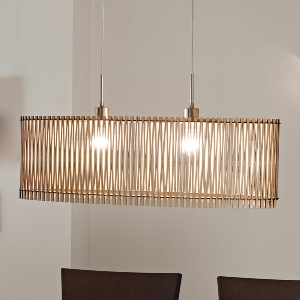 Závěsné svítidlo, ke kterému je potřeba dokoupit dvě žárovky s paticí E27 o maximálním příkonu 60W. Konstrukce je vyrobena z kovu v povrchové úpravě saténového niklu. Difuzor je vyroben ze dřeva. Délku závěsu je možno libovolně zkrátit. Hodnota stupně krytí je IP20.