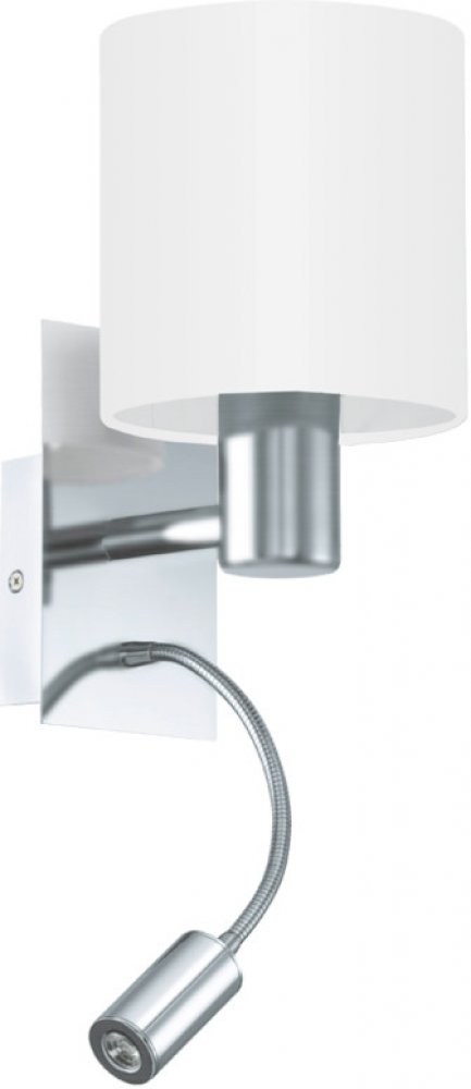 Nástěnné svítidlo pochází z řady PASTERI. Konstrukce je vyrobena z oceli a má povrchovou úpravu v matném niklu. Je osazeno dvěmi světelnými zdroji. Hlavní světelná část je určena pro žárovku s paticí E27, limitováni jste pouze příkonem 40W. Tu zdobí textilní, bílé stínítko. Druhá světelná část je vybavena flexibilním ramenem a je vybavena integrovanou LEDkou, která svítí 380lumeny. Na spodní stran...