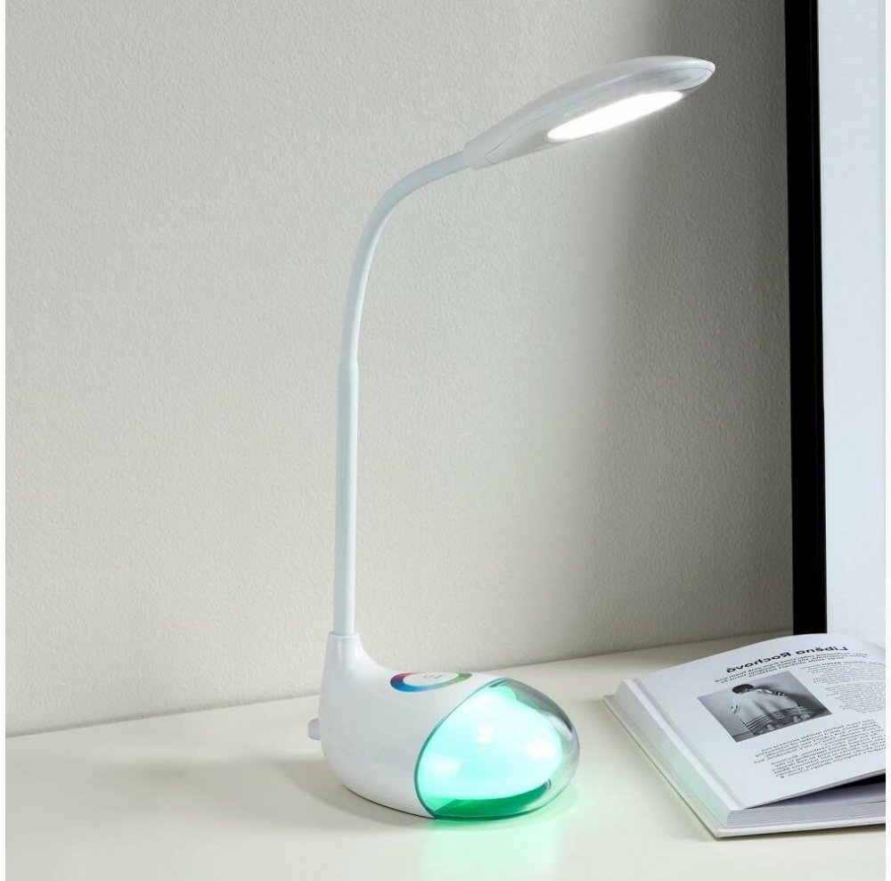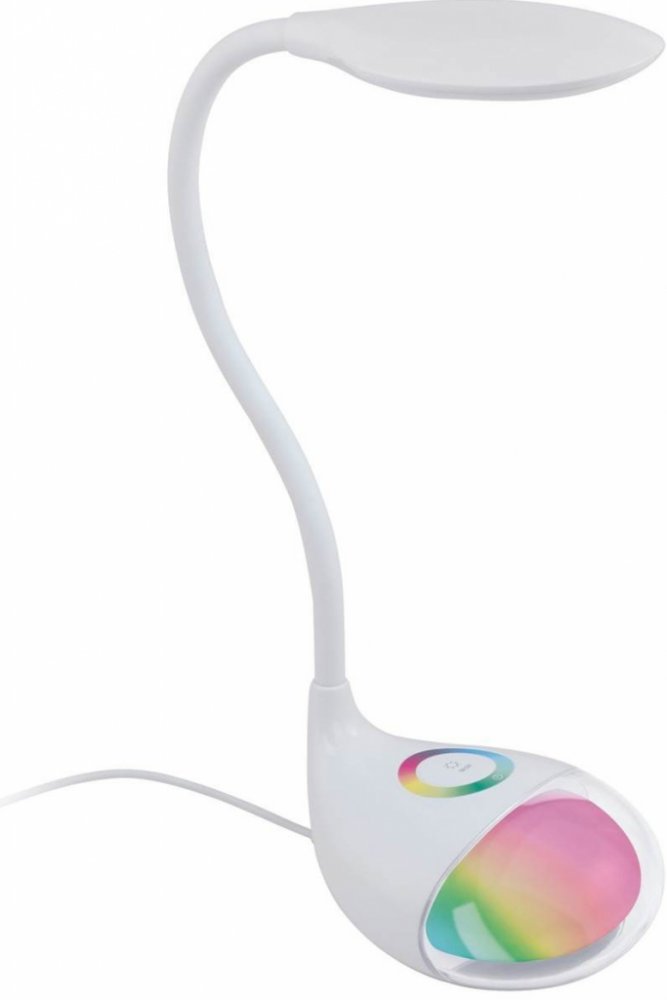 LED Stolní lampa CABADO 1LED stolní lampa CABADO 1 je vyrobena z bílého plastu a představuje ideální řešení pro pracovní prostředí. Díky integrovaným LED diodám v hlavě lampy poskytuje neutrální bílé světlo, které je ideální pro práci. Ovládání jasu je navíc jednoduché a intuitivní – pomocí dotykové plochy na základně lampy lze světlo tlumit i zapínat ve třech stupních. Funkce a design Možnost výběru různých RGB světelných barev na základně lampy zajišťuje příjemnou atmosféru. Flexibilní krk lampy umožňuje rychlé a přesné nasměrování světla na požadované místo. Čistý a nadčasový design lampy snadno zapadne do moderního interiéru.Díky svému modernímu designu a praktičnosti je LED stolní lampa CABADO 1 dokonalým doplňkem pro vaši pracovní plochu, ať už se jedná o kancelář nebo domácí pracovnu.