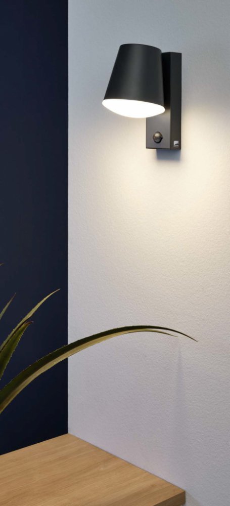 Venkovní nástěnné LED svítidlo CALDIERO se skládá z pozinkovaného kovového těla antracitové barvy s kulatým kovovým stínidlem. Světlo je odolné proti stříkající vodě (IP44) a umožňuje bezpečné venkovní použití. Venkovní nástěnné svítidlo je také vybaveno pohybovým čidlem a světlo zapíná automaticky. To osvětlí špatně viditelné oblasti a odradí nezvané hosty. Integrovaný soumrakový senzor měří okolní jas a zapíná světlo, jen když je to opravdu nutné. Díky minimalistickému designu se venkovní svítidlo hodí do každého venkovního prostoru, ať už přímo u vchodu do domu nebo na terasu. Lampa není součástí dodávky. Venkovní světlo je vhodné pro jakýkoli světelný zdroj s paticí E27.