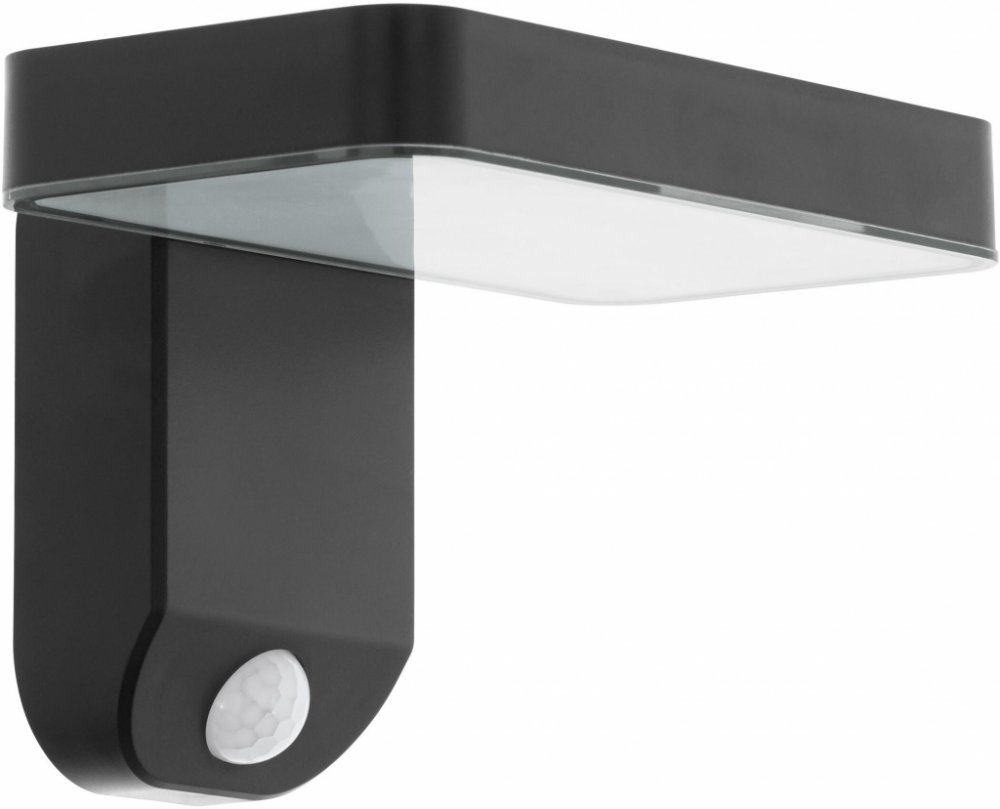 - Venkovní nástěnné solární LED svítidlo s pohybovým senzorem (dosah 8 metrů, doba svícení od 40 sekund).