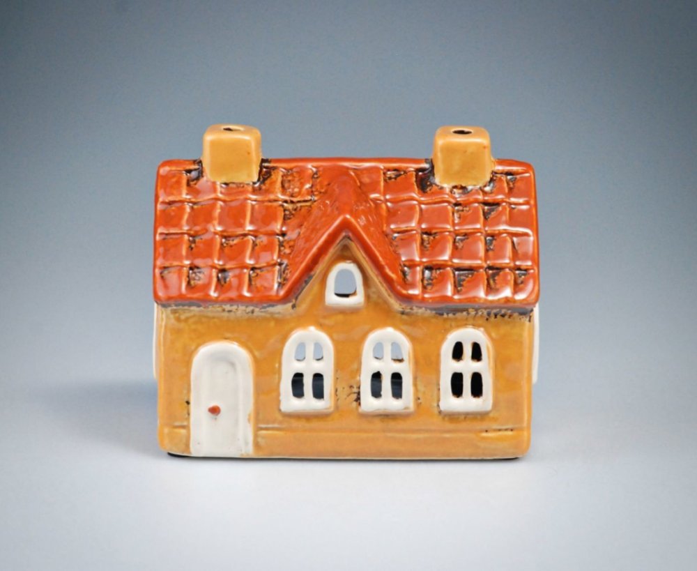 EGO dekor Svícen na čajovou svíčku domeček 15 cm rezavý