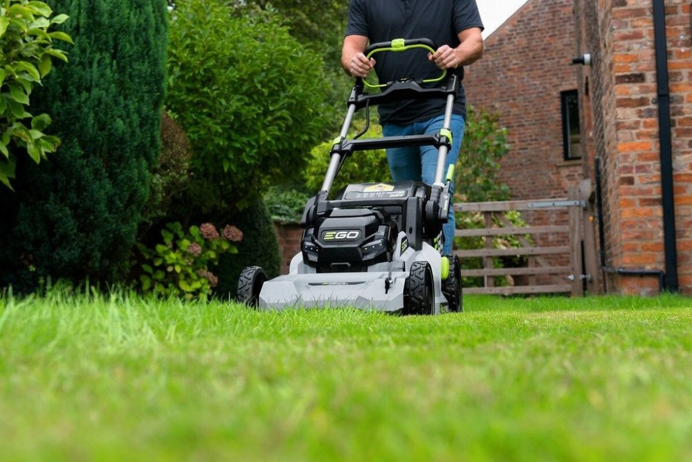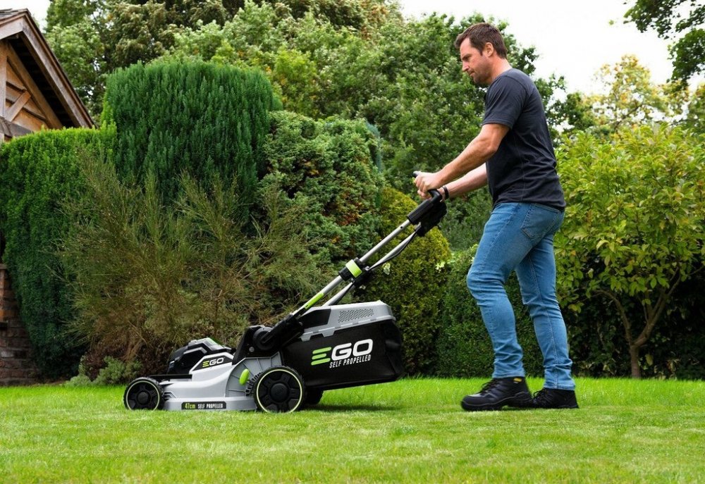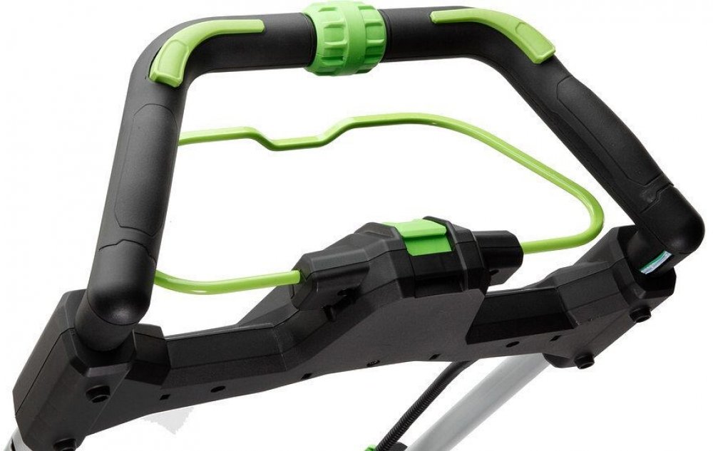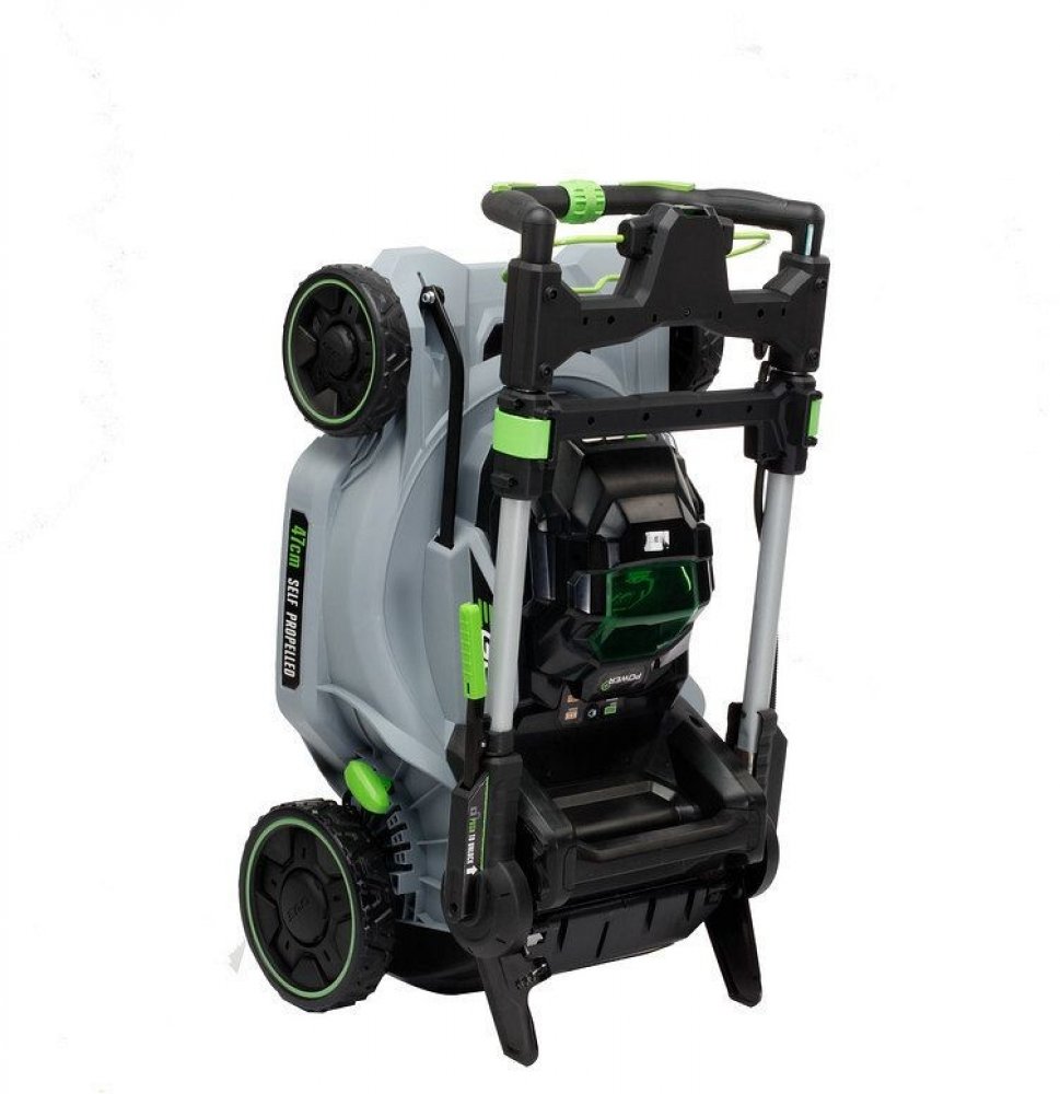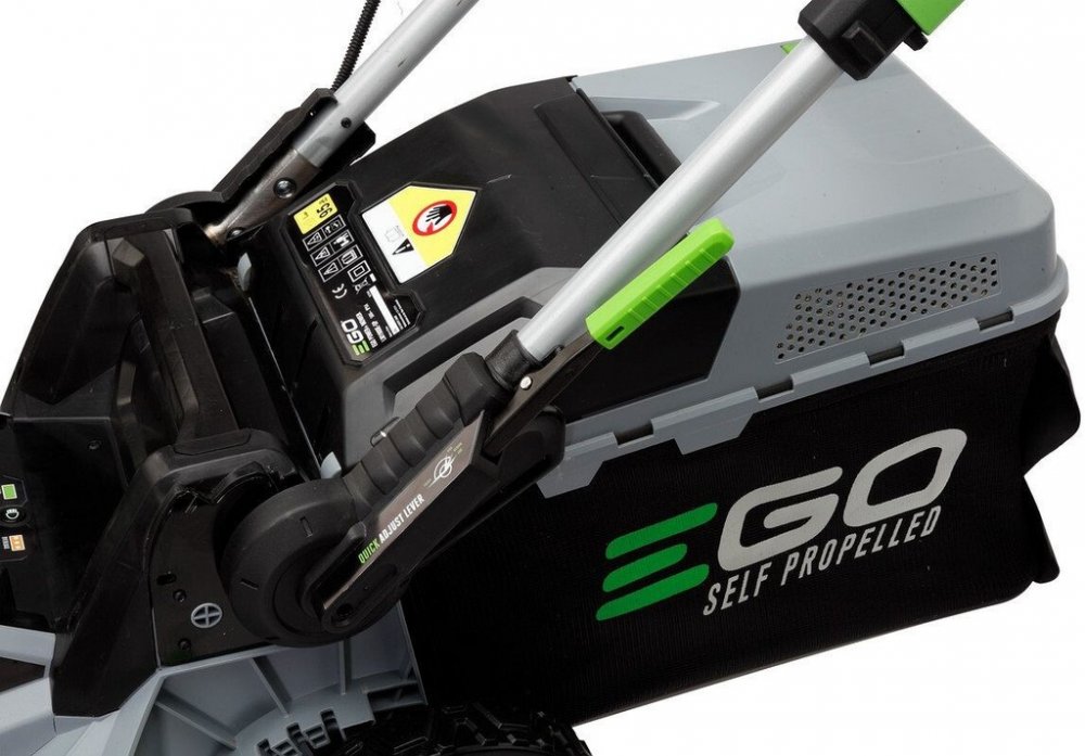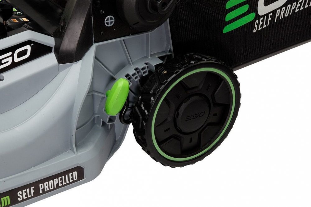 EGO 1700 W 47 cm 5 km/h 80 dB plastové 27 kg s pojezdem akumulátorové rotační 55 l 800 m2 56 V 5 Ah elektromotor 80 mm s plastovo-látkovým košem s 1 x 5,0 Ah