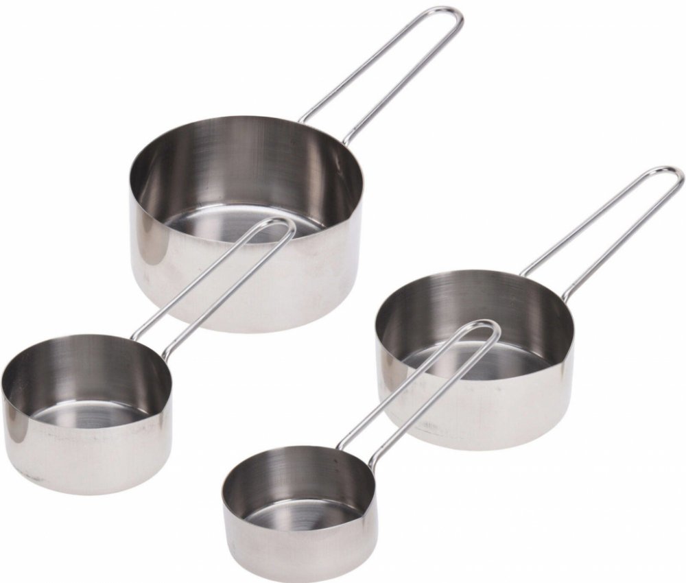 V sadě najdete celkem čtyři kusy kovových odměrek s rukojetí o objemu 250 mililitrů (1 šálek), 125 mililitrů (½ šálku), 80 mililitrů (⅓ šálku) a 60 mililitrů (¼ šálku). Kuchyňské odměrky jsou vyrobeny z kvalitní nerezové oceli, čímž je zaručena dlouhá životnost této kuchyňské pomůcky.