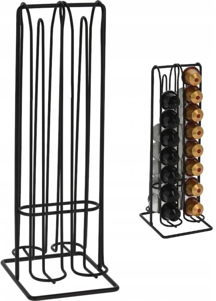 Pokud máte doma kávovar na kávové kapsle, je pro vás černý kovový stojan na kávové kapsle nepostradatelným pomocníkem. Do tohoto stojanu o výšce 29 centimetrů, šířce 10 centimetrů a hloubce 12 centimetrů elegantně vyskládáte celkem 32 kávových kapslí, které budete mít stále po ruce.