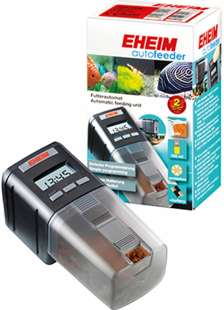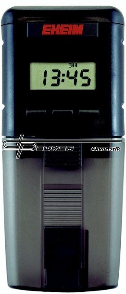 Mít milé sousedy je pěkná věc. Ale opravdu chcete svěřit své akvárium během Vaší dovolené někomu, kdo se v této problematice vůbec nevyzná? Máme pro Vás lepší řešení:Automatické krmítko EHEIM zajistí pravidelné krmení Vašich ryb, automatický dávkovač hnojiva EHEIM dodá Vašim rostlinám vše, co potřebují, a vnější a vnitřní filtry EHEIM osazené správnými filtračními médii se postarají o dlouhodobě průzračnou a zdravou vodu pro Vaše ryby.Můžete si tak v klidu vychutnávat nejkrásnější týdny roku. Doma je vše v pořádku. Samozřejmě existují i další problémy, jako je např. zalévání květin, ovšem to už je jiná otázka.Kompaktní automatické krmítko EHEIM je poháněno bateriemi, které jsou součástí balení. Aktivně ventilovaný zásobník na krmivo se postará o to, aby krmivo zůstalo suché až do poslední vločky. Pomocí srozumitelného programovaní určíte, kdy obyvatele Vašeho akvária „pozvete ke stolu“. Programování umožňuje také uvolnění dvojité dávky krmiva. Jednoduchým stiskem tlačítka lze kdykoliv dopřát rybám „svačinu“. Varovný systém Vás v pravý čas informuje, pokud začnou docházet baterie. Objem krmítka je cca 100 ml.Novinka: tlačítka jsou nyní chráněna před vystřikující vodou.Novinka: včetně držáku pro nezakrytá akvária a terária. Vhodné také pro nanoakvária.