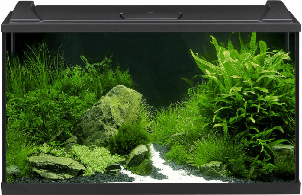 Skleněné akvárium o tloušťce skla 6 mm s krytem.