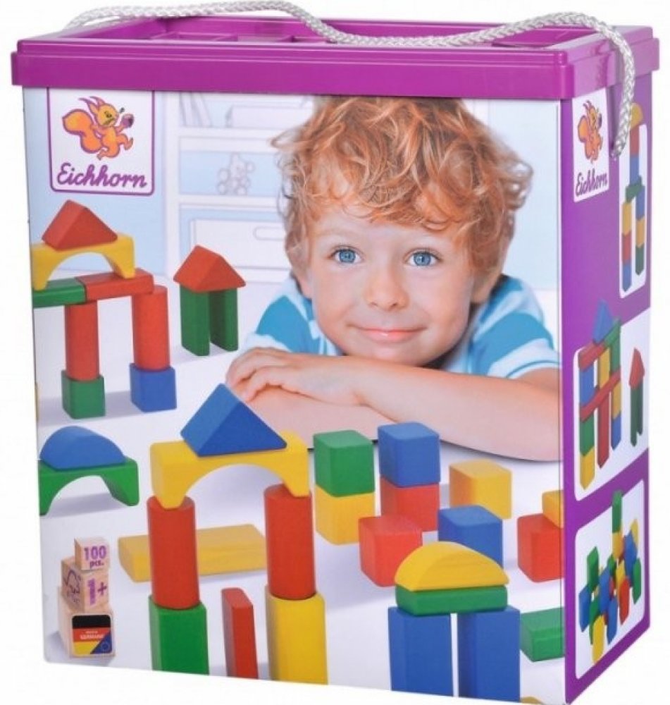 Eichhorn Barevné kostky v kbelíku, 100 prvkůSada 100 dřevěných barevných kostek různých tvarů zabalených v praktickém kbelíku s třídičem tvarů na víku, FSC 100,.Eichhorn Sada 100 dřevěných stavebních bloků zabalených v kbelíku, který je ideální pro skladování. Víko kbelíku má otvory pro třídění tvarů. Klasika, která nesmí chybět žádnému batoleti, díky různým tvarům a barvám stimuluje smysly těch nejmenších. Podporuje vnímání barev, koordinaci ruky a oka a zručnost i u těch nejmenších dětí. Dřevěné kostky o základní velikosti 25 mm mají různé tvary, a tak přesně zapadají do otvoru ve víku sady. Ve 100, bukové dřevoem FSC Při výrobě našich dřevěných bloků se používá pouze bukové dřevo. Licenční číslo: FSC-C005308. K barvení našich bloků se používají pouze zdravotně nezávadné barvy na vodní bázi. Kvalita vyrobená v Německu díky zaobleným rohům a hranám, materiálům bez škodlivých látek a změkčovadel a také kontrole kvality zajišťují, že hračka je bezpečná. Vhodné pro děti starší 1 roku.Výrobky Eichhorn mají 70letou tradici a poskytují pedagogicky hodnotné produkty, které podporují motoriku a kreativitu od nejútlejšího věku dítěte stavěním, konstruováním, tříděním. Bezpečný výrobek díky barvení, pro které používáme pouze zdravotně nezávadné barvy na vodní bázi. Hračky Eichhorn jsou vyráběny v Německu a zaručují bezpečné používání pro nejmenší. Dřevěné stavebnice Eichhorn 100: Barevné dřevěné stavebnice 100 od společnosti Eichhorn nabízejí dětem od jednoho roku možnost popustit uzdu své kreativitě a vytvořit umělecká díla zcela podle vlastních představ. Stavební bloky lze po hraní uložit do krabice s třídicím víkem. Při výrobě stavebnic Eichhorn se používá výhradně dřevo FSC 100% pocházející z trvale udržitelného lesního hospodářství. Tento výrobek Eichhorn je vyroben v Německu. - Vhodné pro děti od jednoho roku - - 100 barevných dřevěných stavebních bloků Materiál: bukové dřevo Hersteller-Artikelnummer: 100010171