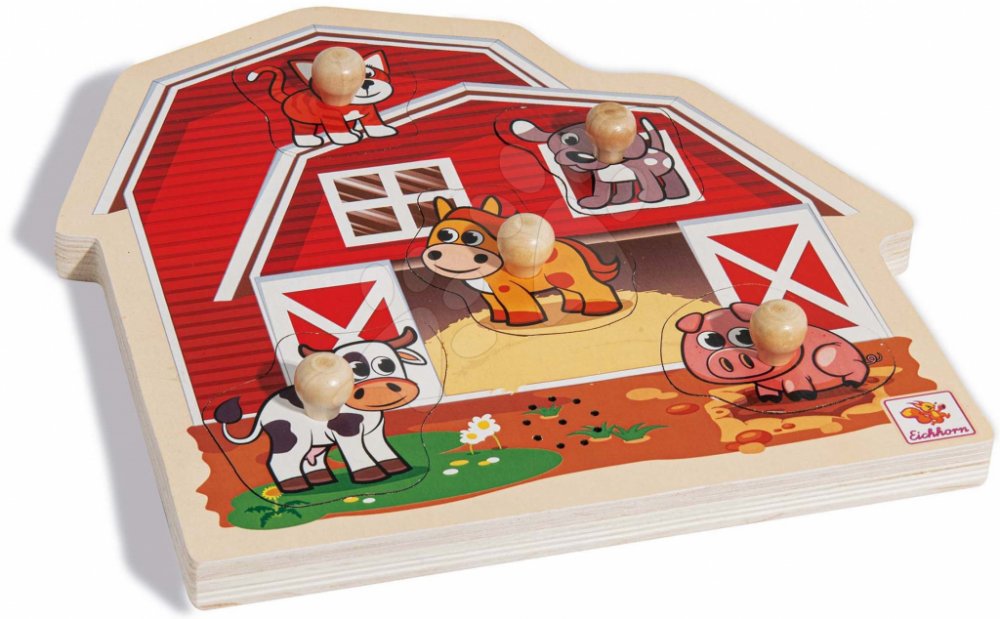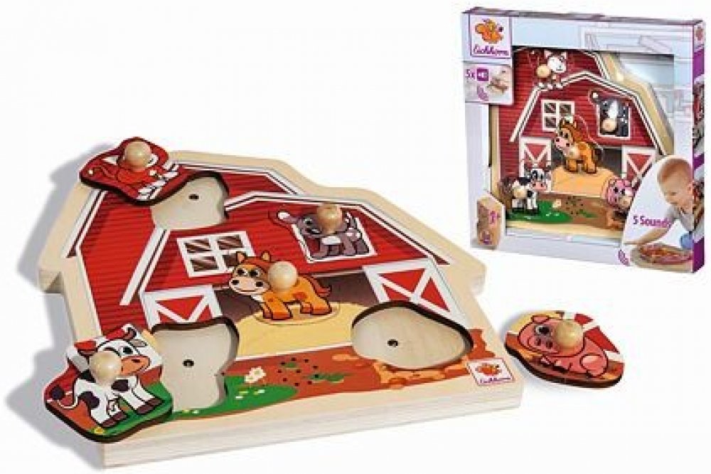Skládačka Eichhorn se zvukem: Se zvukovou skládačkou Eichhorn mohou děti objevit pět zvířátek z farmy. Po správném složení motivů zvířat se ozve odpovídající zvířecí hlas. Na výrobu zvukového puzzle Eichhorn se používá pouze 100% dřevo FSC® z trvale udržitelného lesního hospodářství. Vhodné pro děti od dvou let. Certifikováno: FSC® 100%, číslo licence: FSC-C005308 Rozsah dodávky: 1 zvuková skládač...