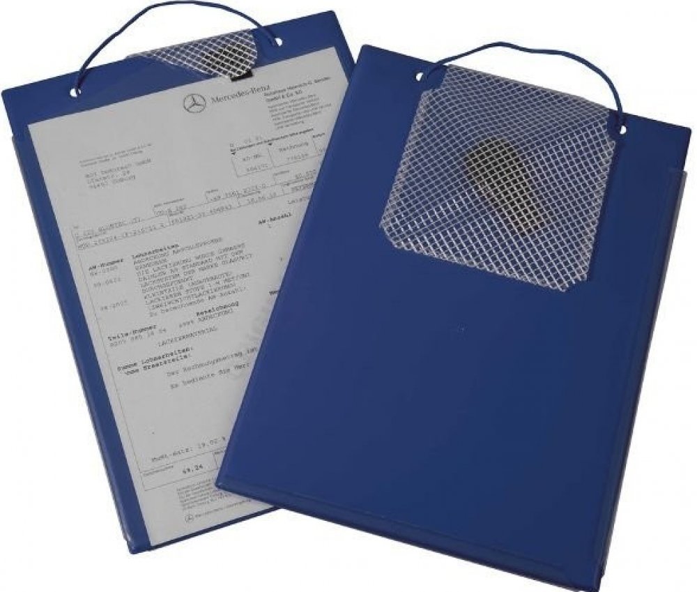 Desky na zakázkové dokumenty (A4) s průhlednou přední fólií, s uzávěrem na suchý zip, poutkem na zavěšení a s kapsou na klíče.